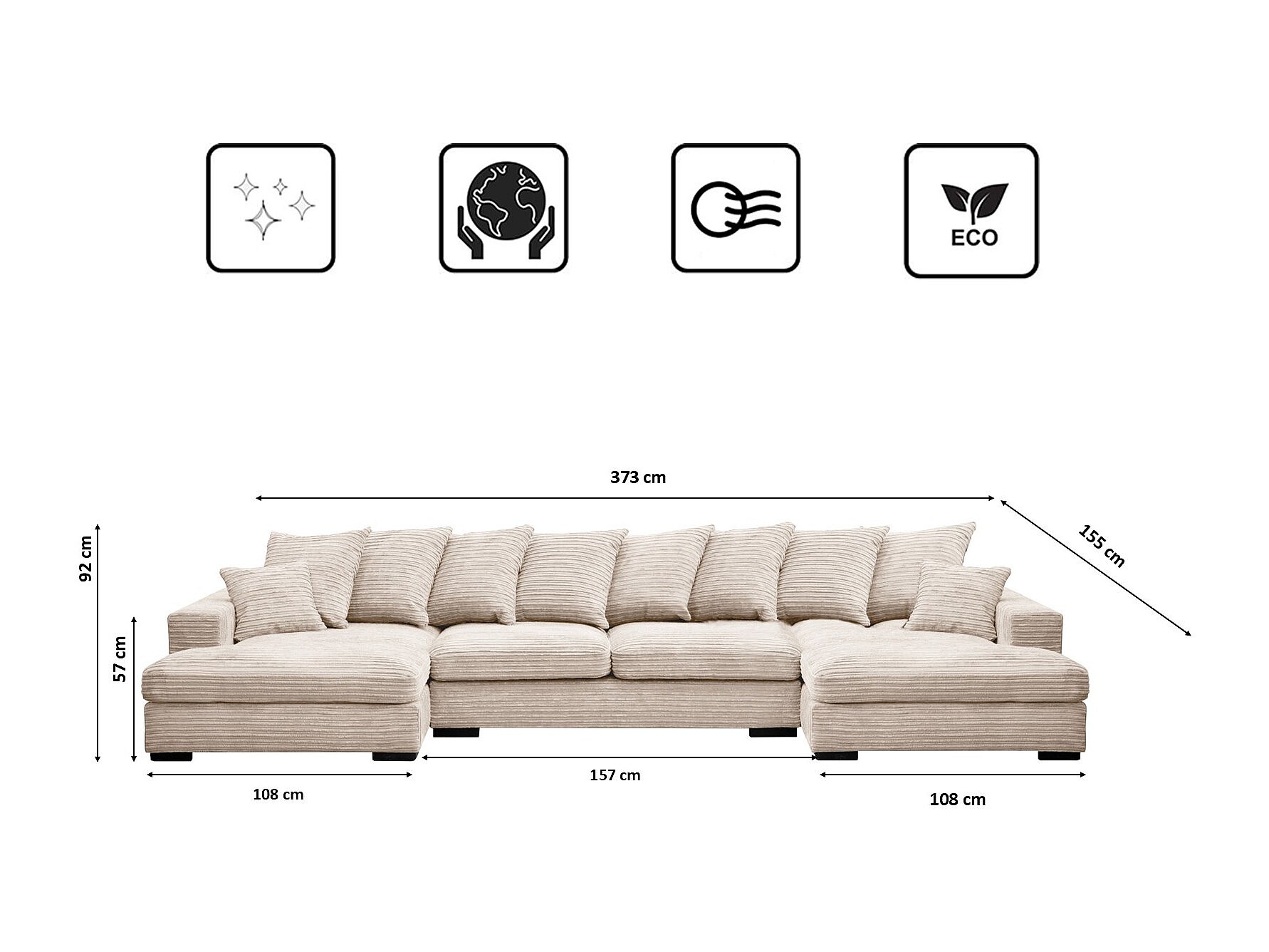Hoekbank met slaapfunctie en bedstee, U-vormige bank, U-vormige bank Gabon stof Zoom Crème