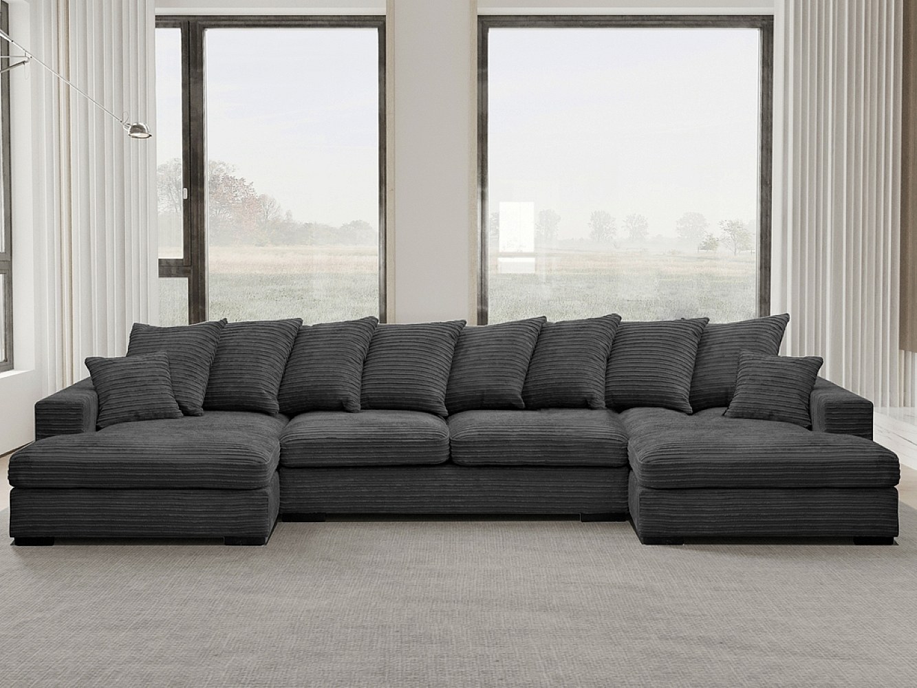 Hoekbank met slaapfunctie en bedstee, U-vormige bank, U-vormige bank Gabon stof Zoom Graphite