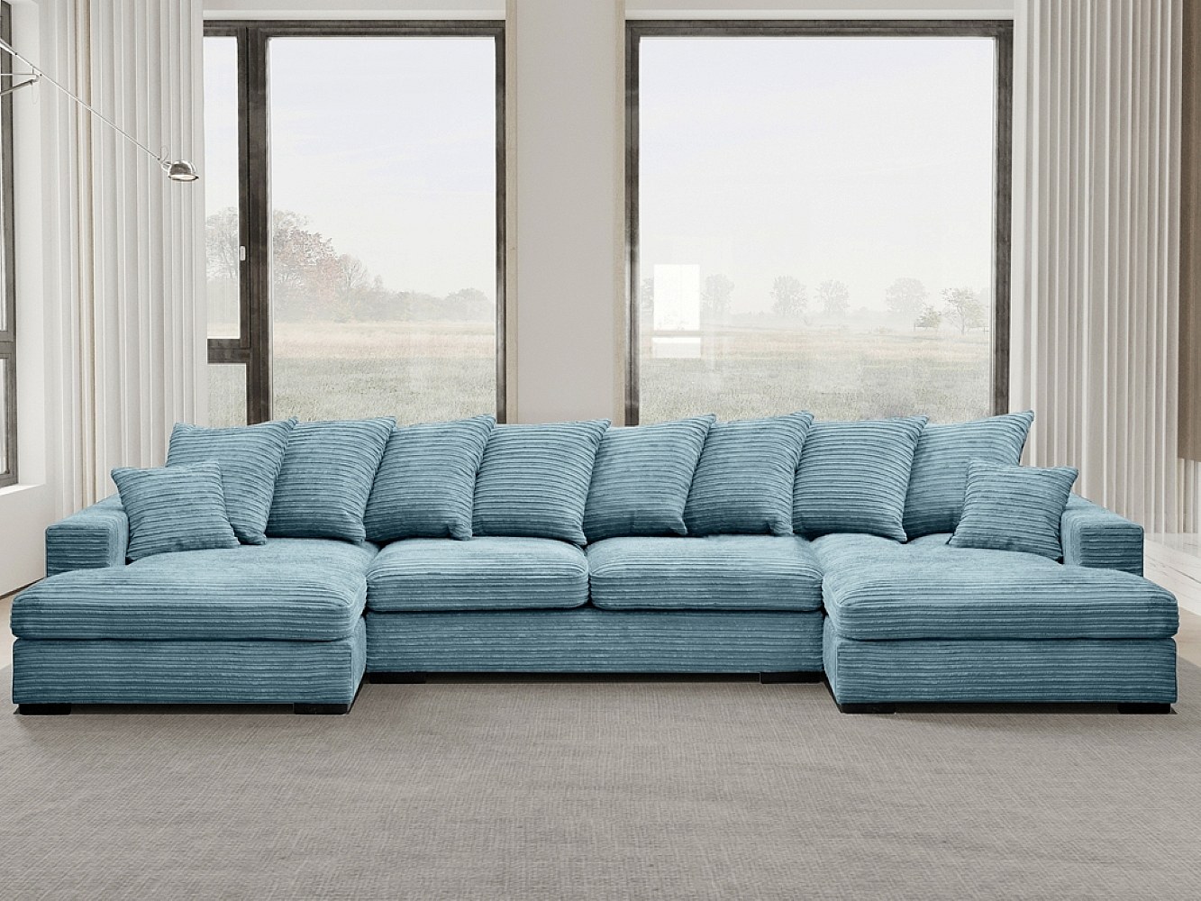 Hoekbank met slaapfunctie en bedstee, U-vormige bank, U-vormige bank Gabon stof Zoom Lichtblauw