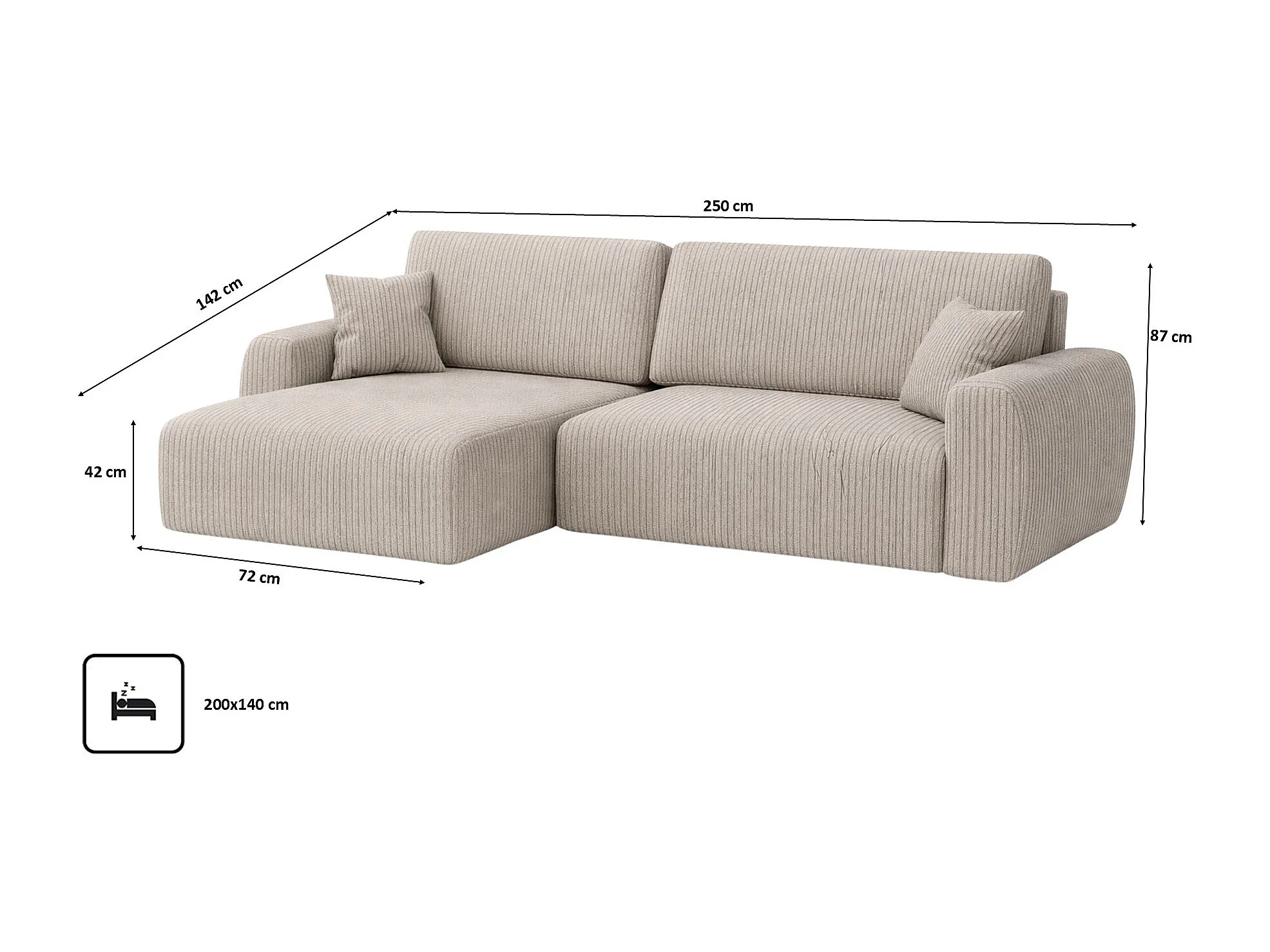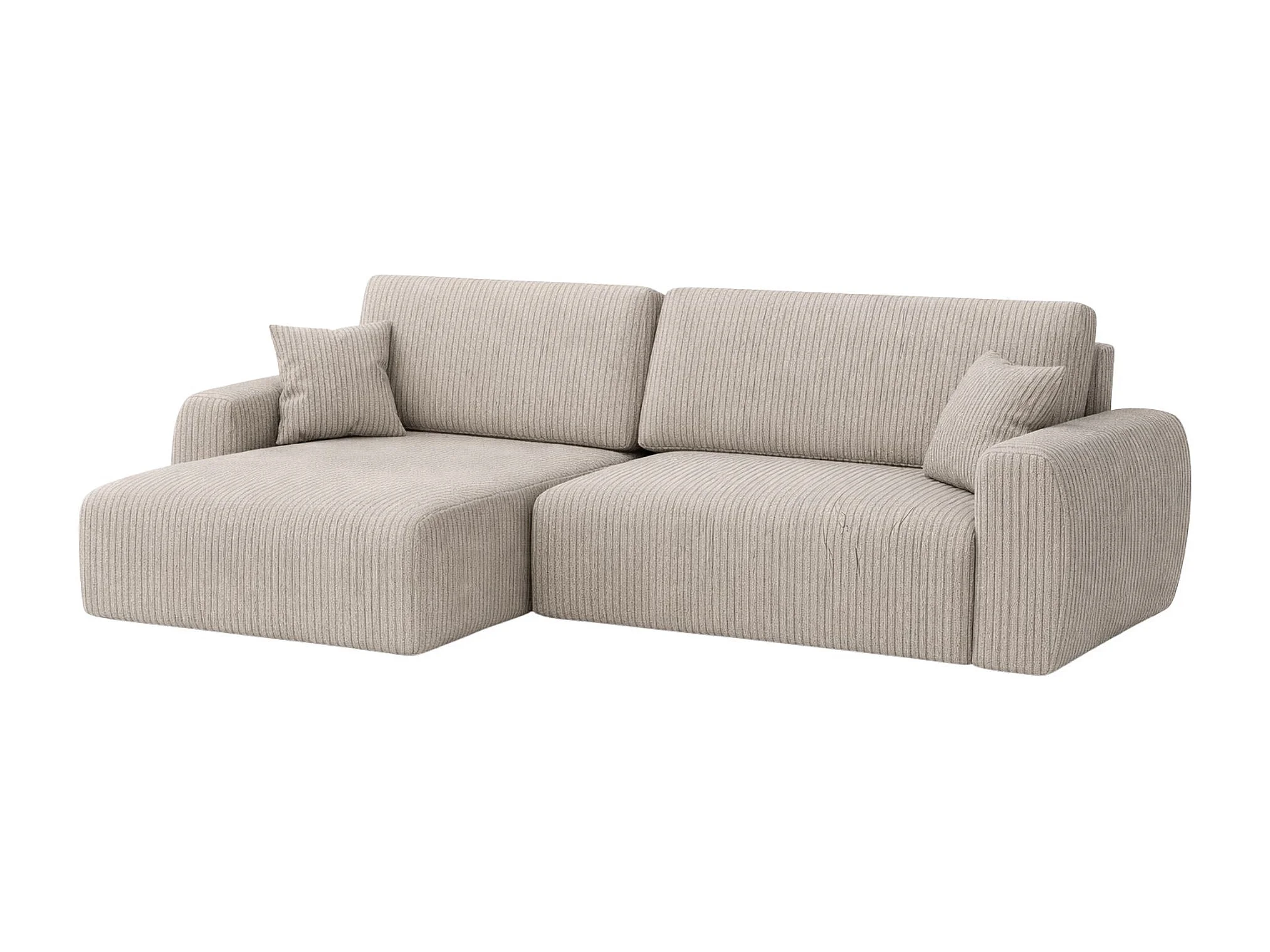 Hoekbank met slaapfunctie en opbergruimte Ariel L, corduroy stof, Poso stof, donkerbeige, links