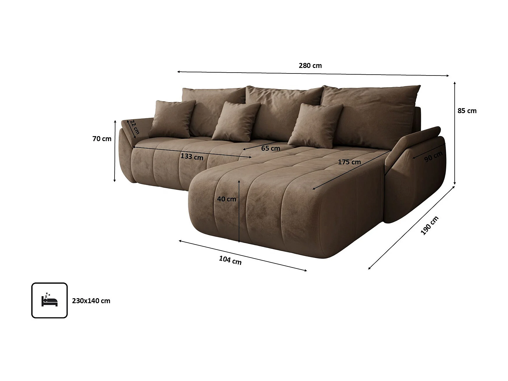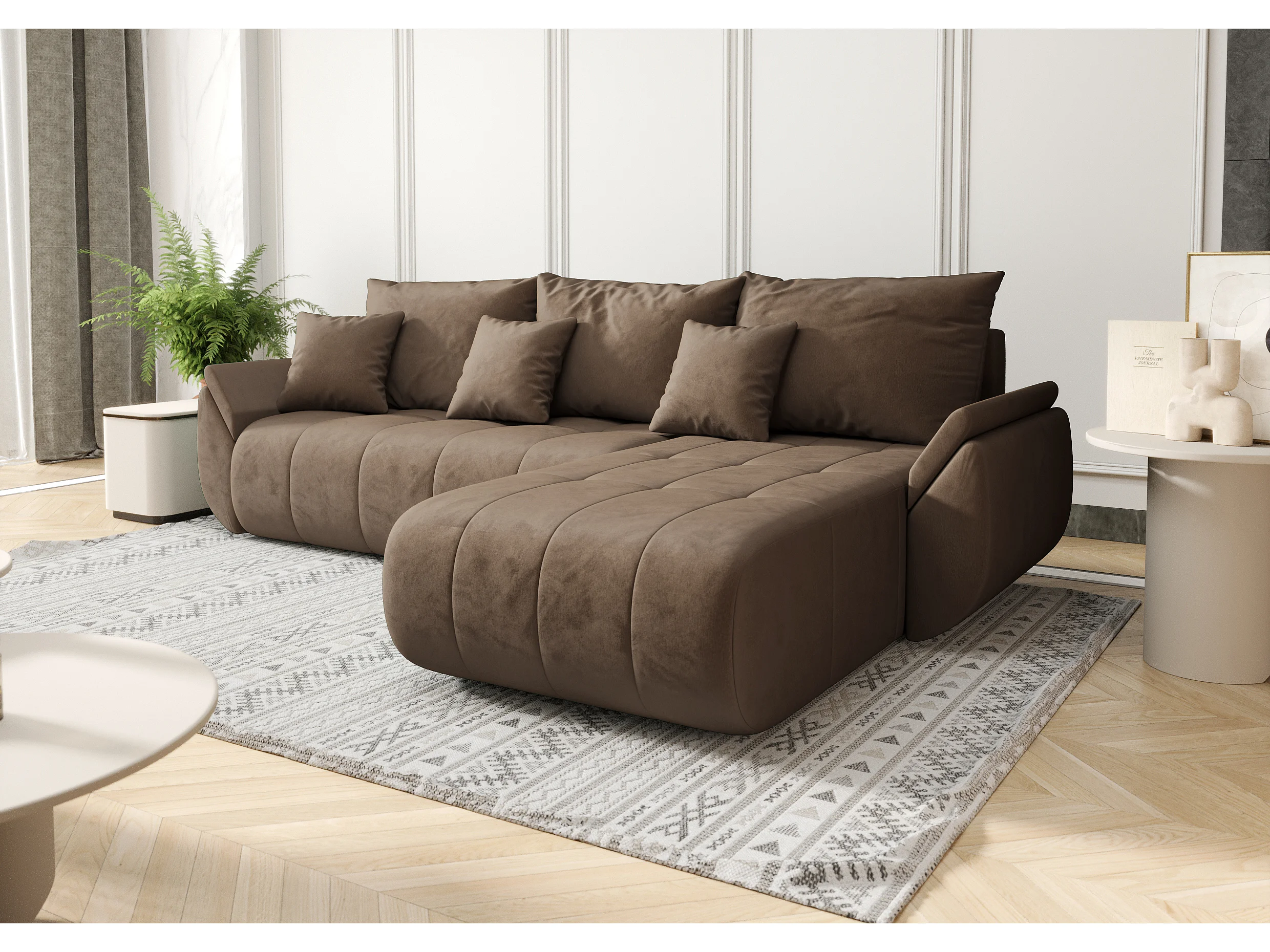 Hoekbank met slaapfunctie en opbergvak TOKYO, stof MONOLITH, lichtbruin, rechts