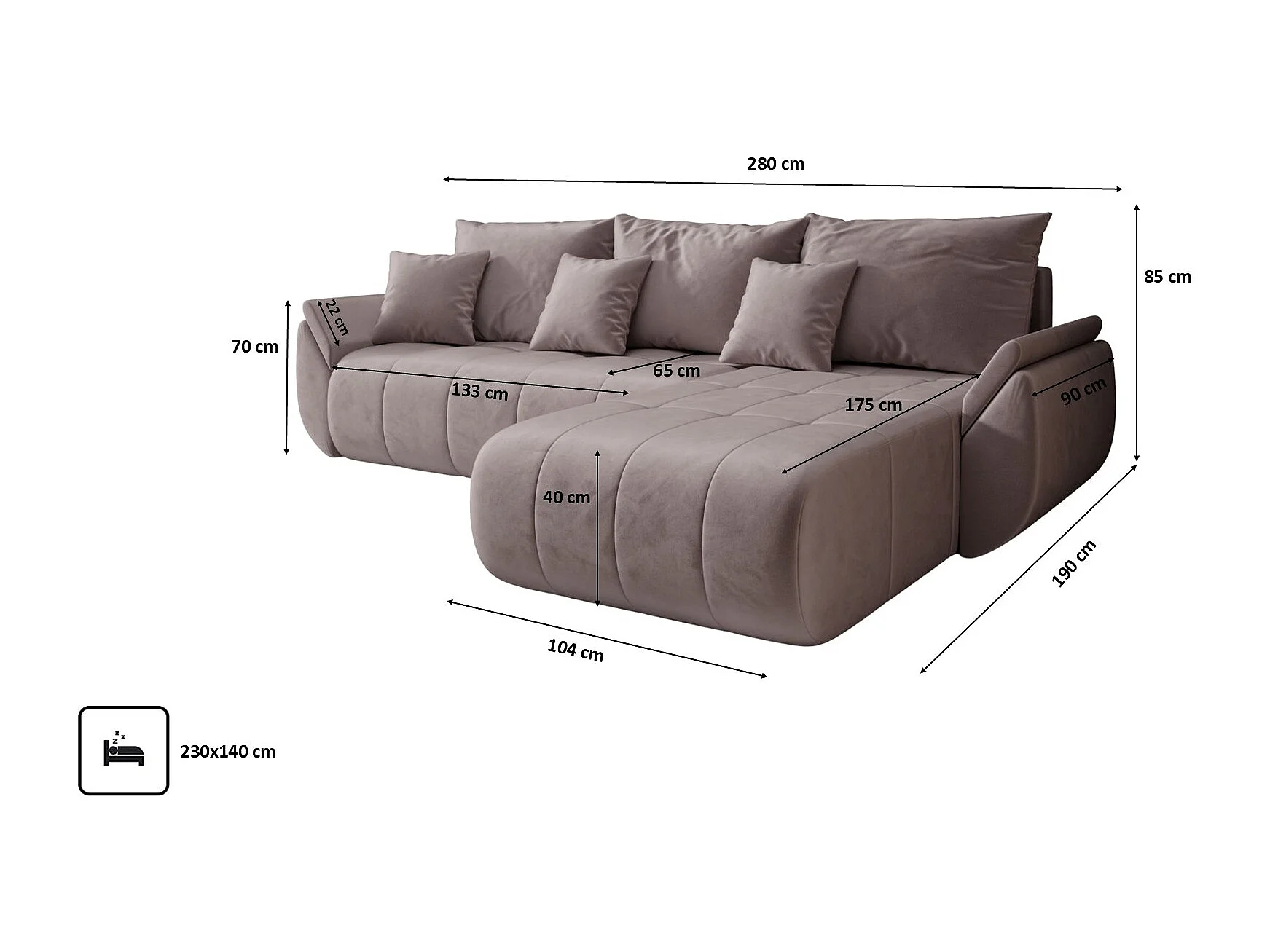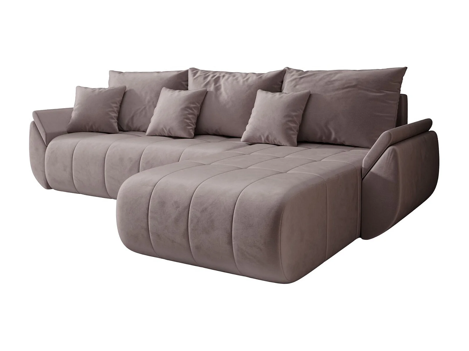 Hoekbank met slaapfunctie en opbergvak TOKYO, stof MONOLITH, paars, rechterzijde