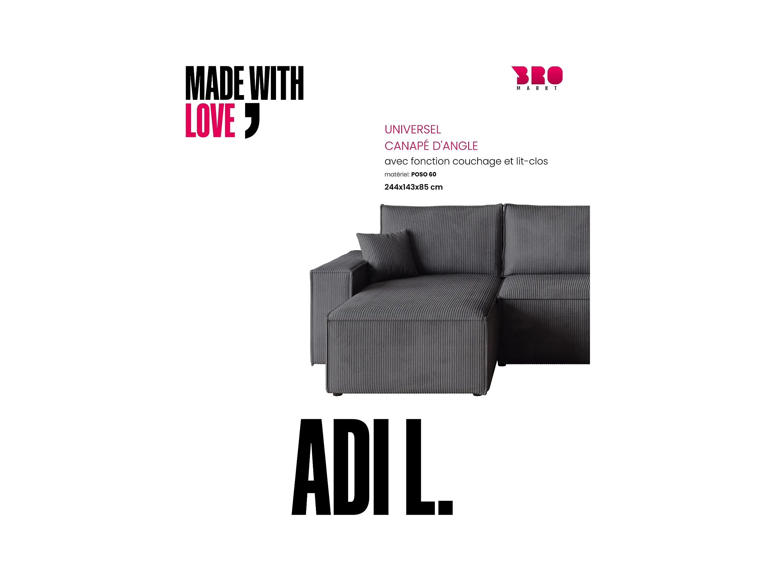 Hoekbank met slaapfunctie grijs ADI L