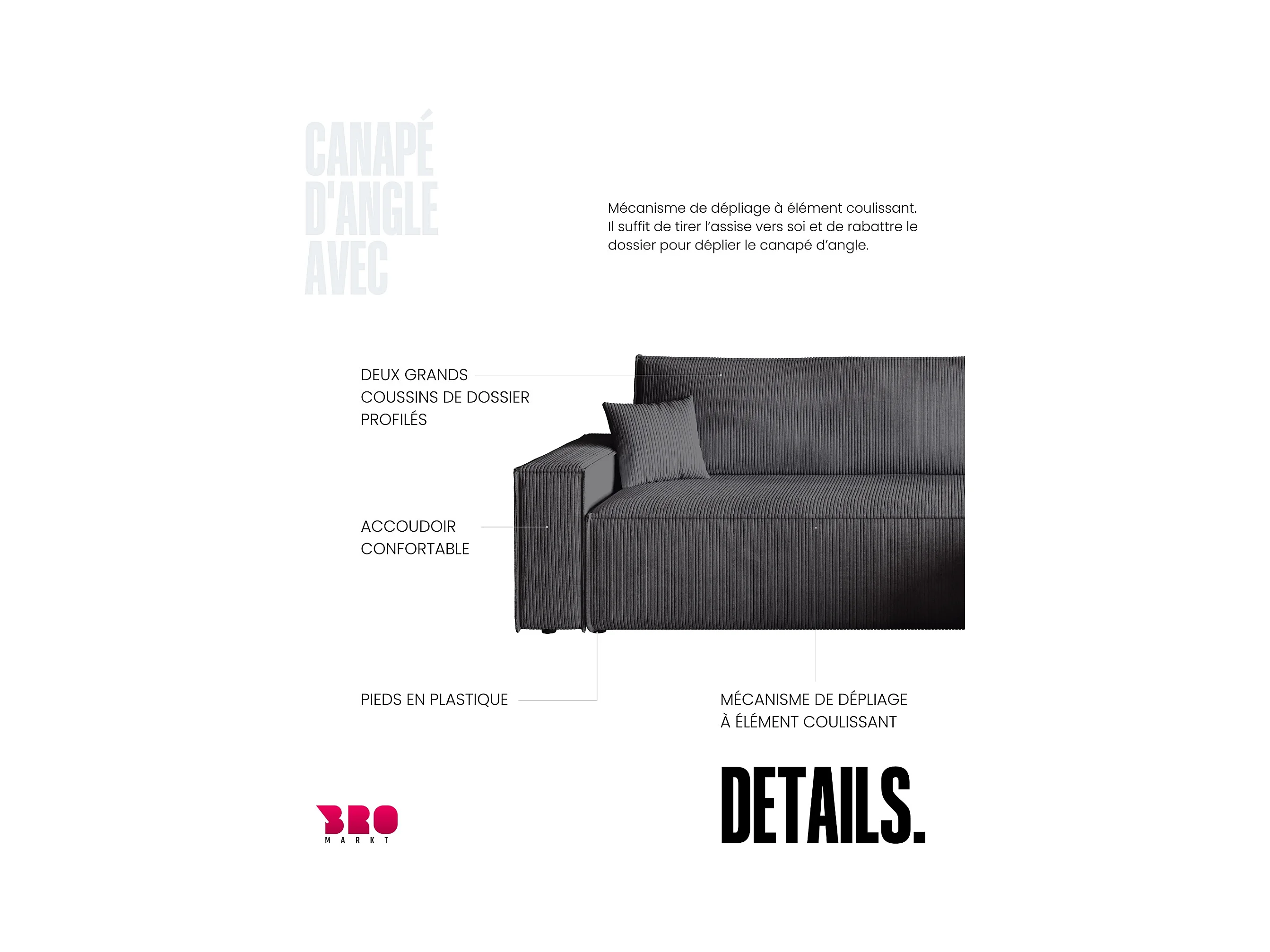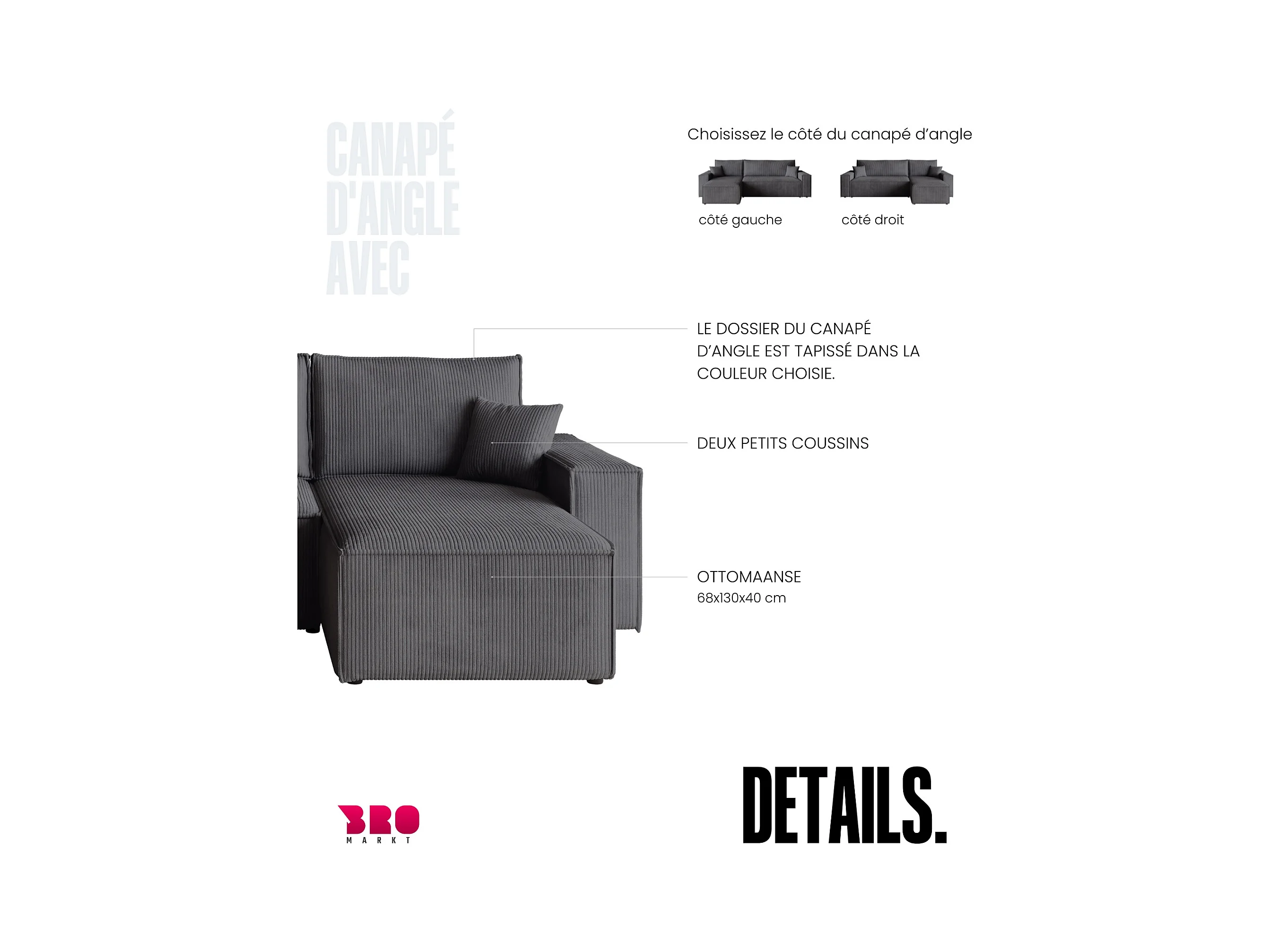 Omkeerbare L-vormige hoekbank - in grijs corduroy - SCARLO