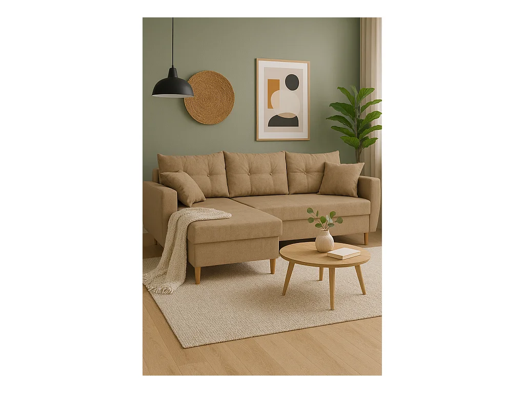 Hoekbank met slaapfunctie, linkse uitvoering ROMEO L, stof Manila 21 beige, 234x156x74 cm