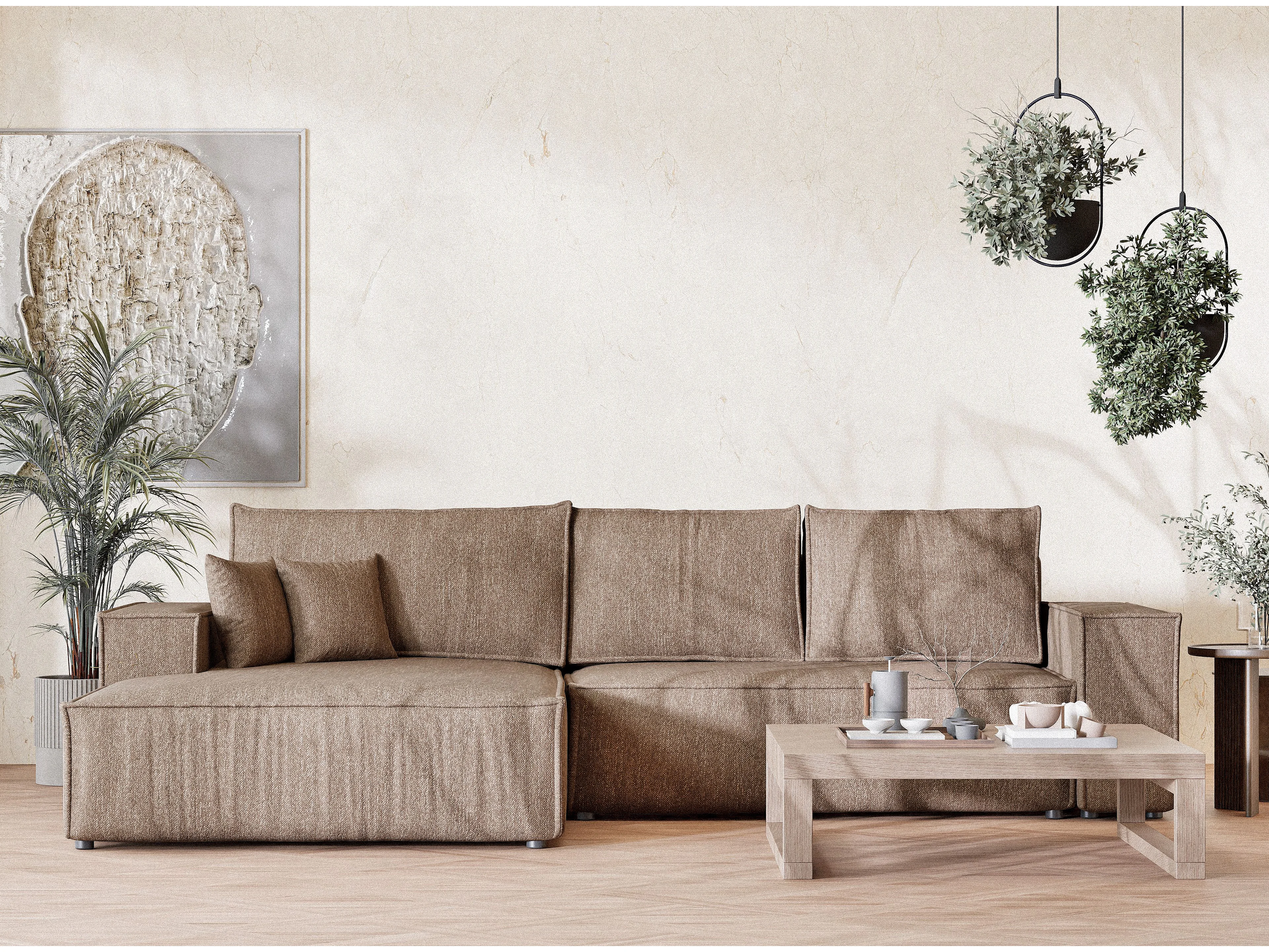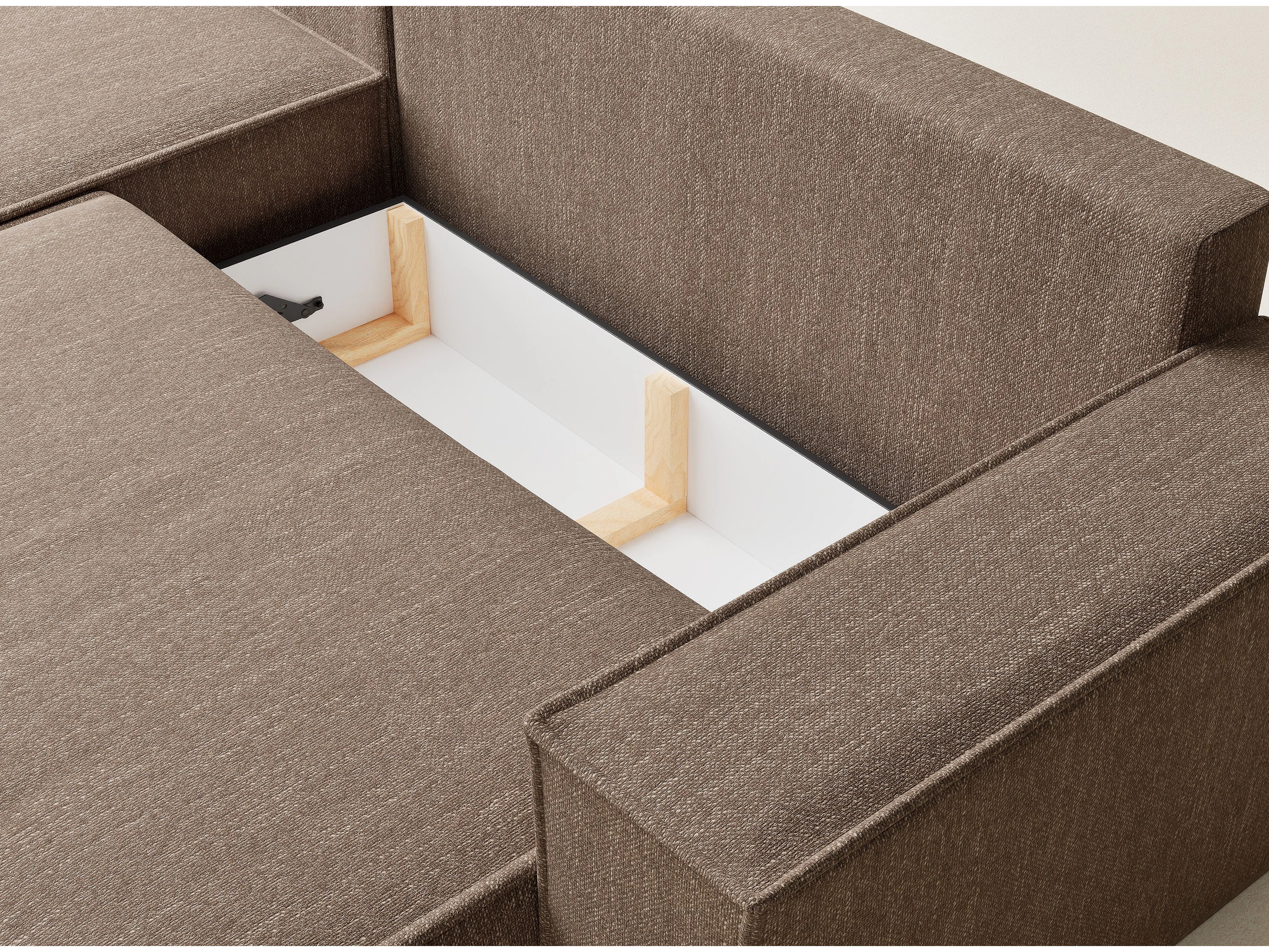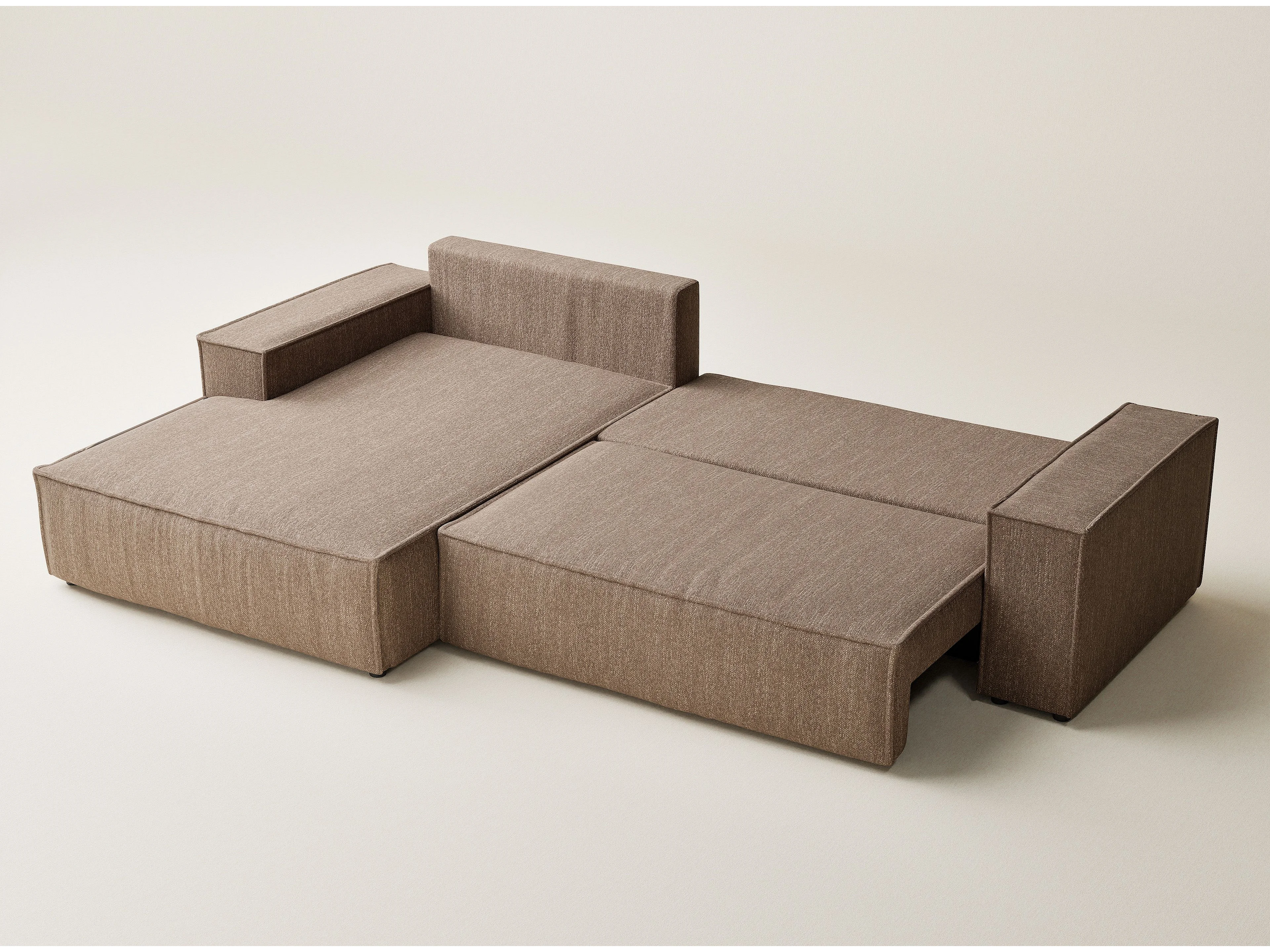 Hoekbank met slaapfunctie Maze in geweven stof - Vijfpersoons - bruin