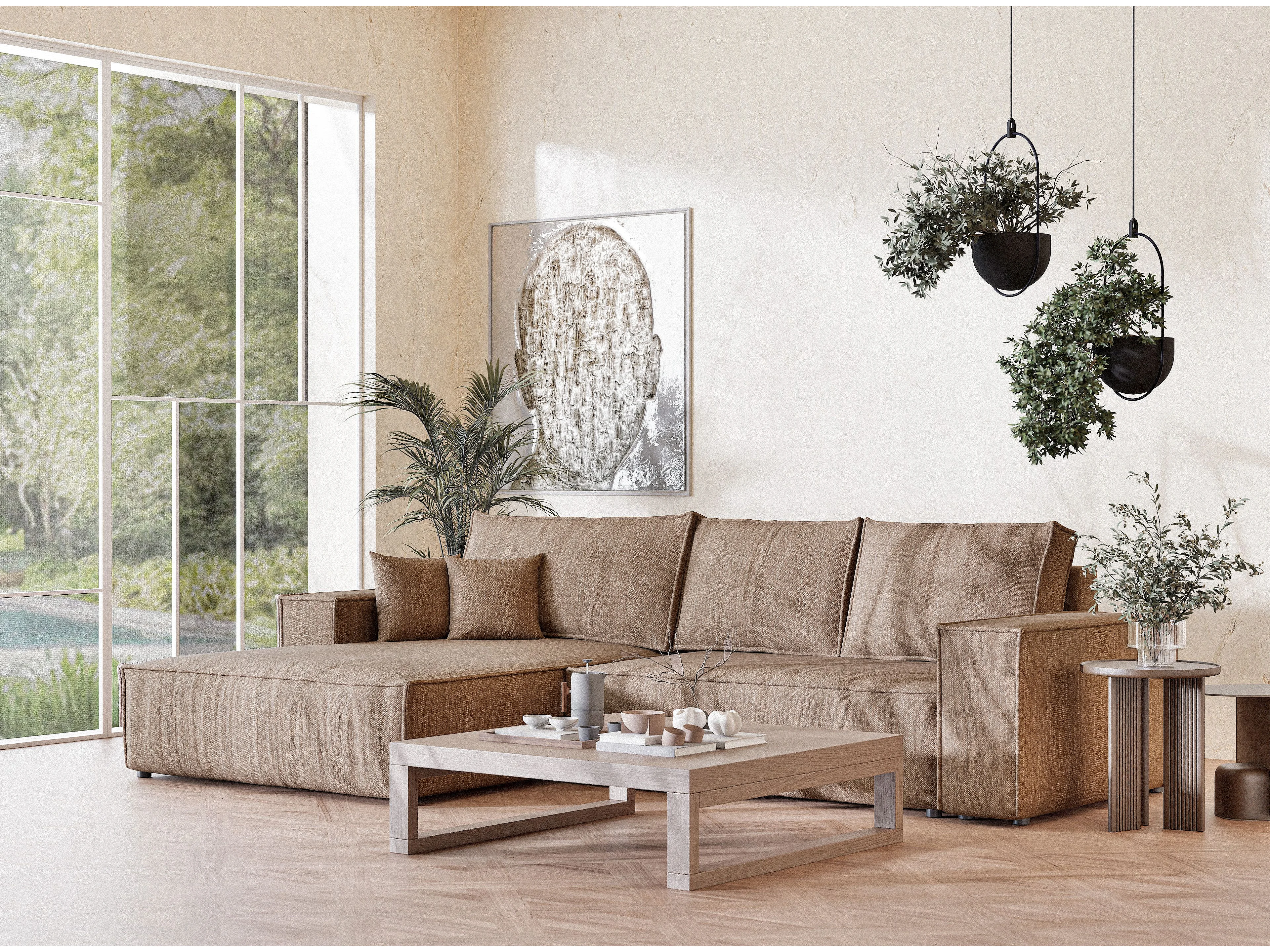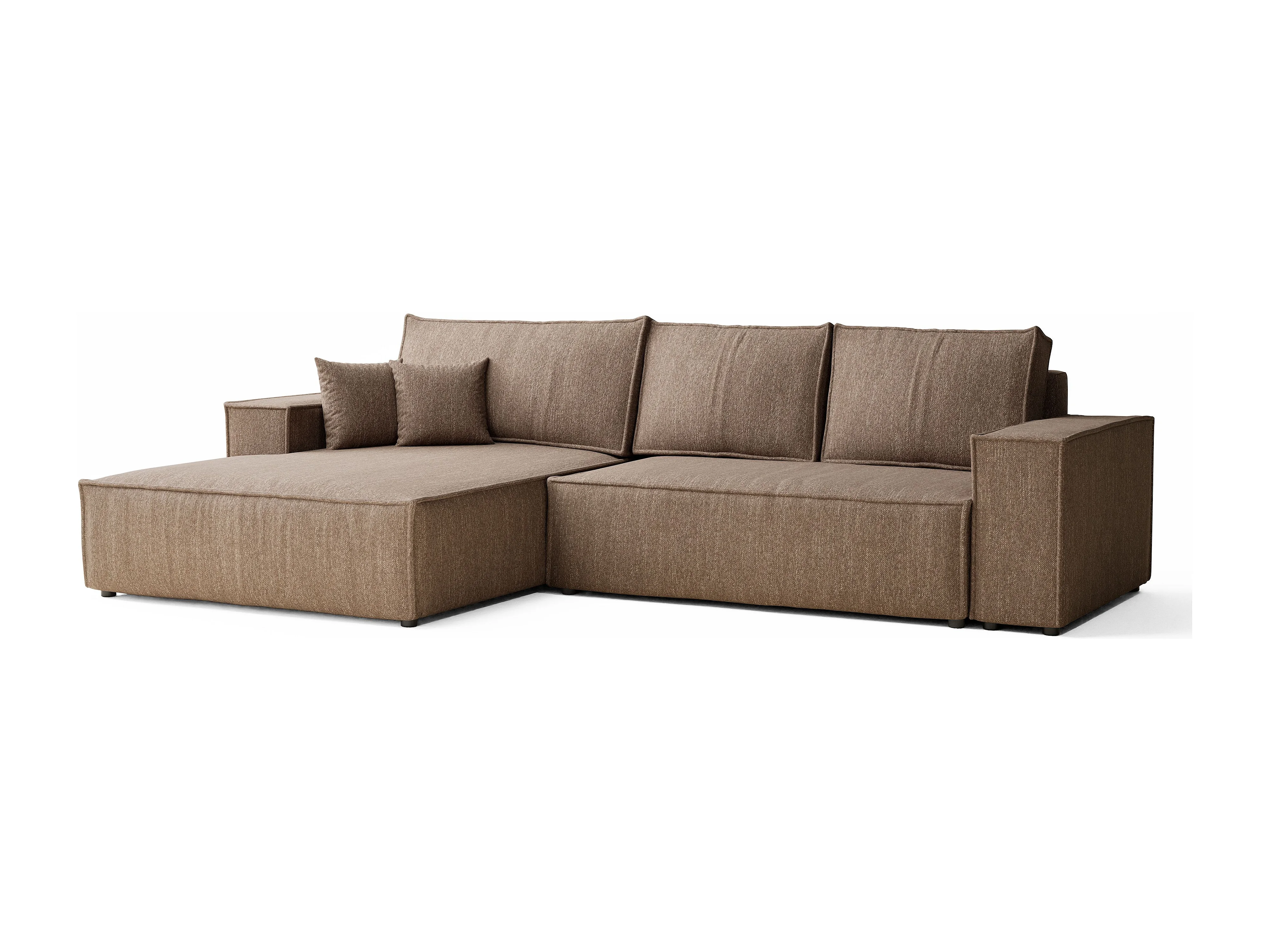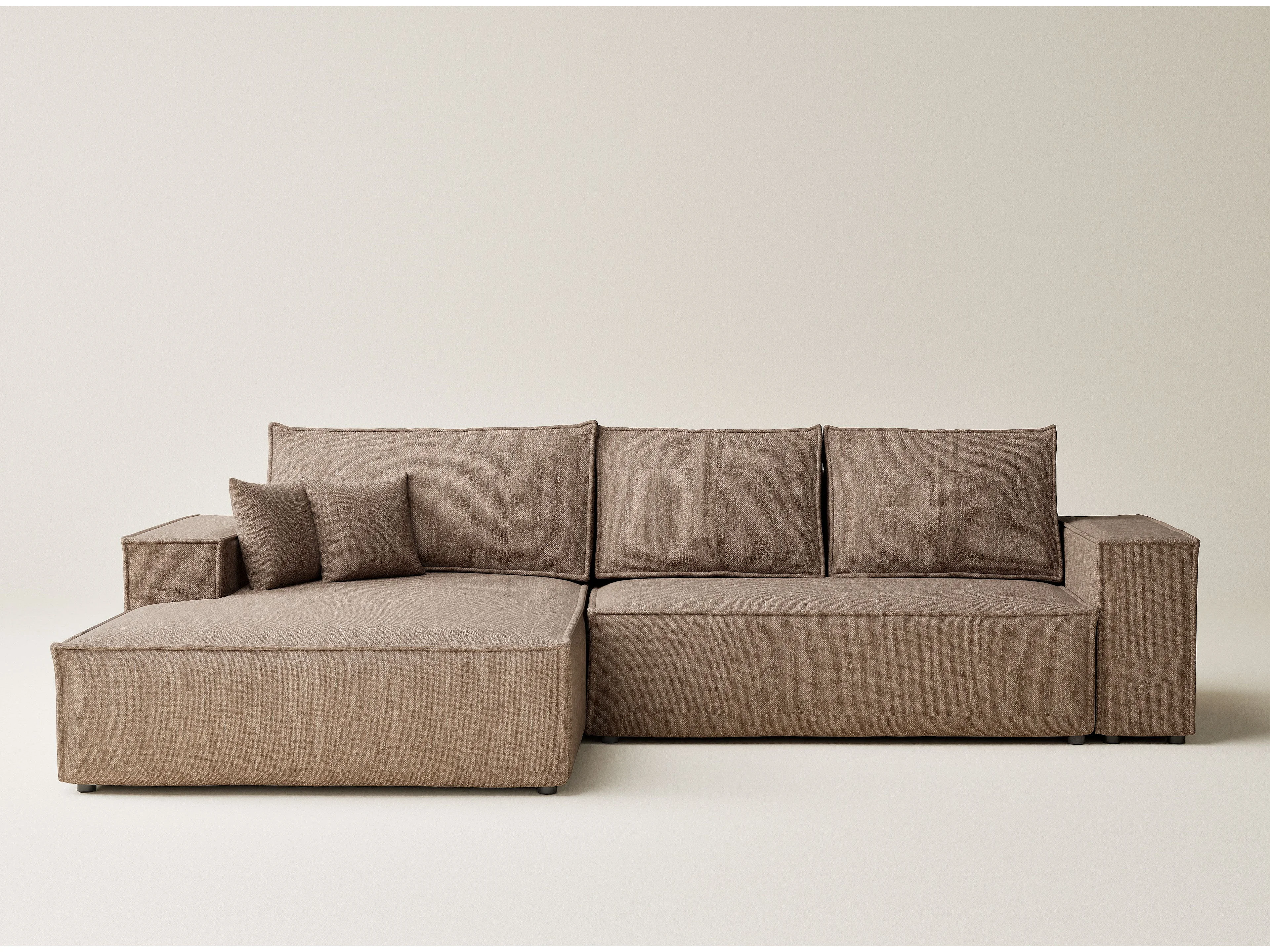 Hoekbank met slaapfunctie Maze in geweven stof - Vijfpersoons - bruin