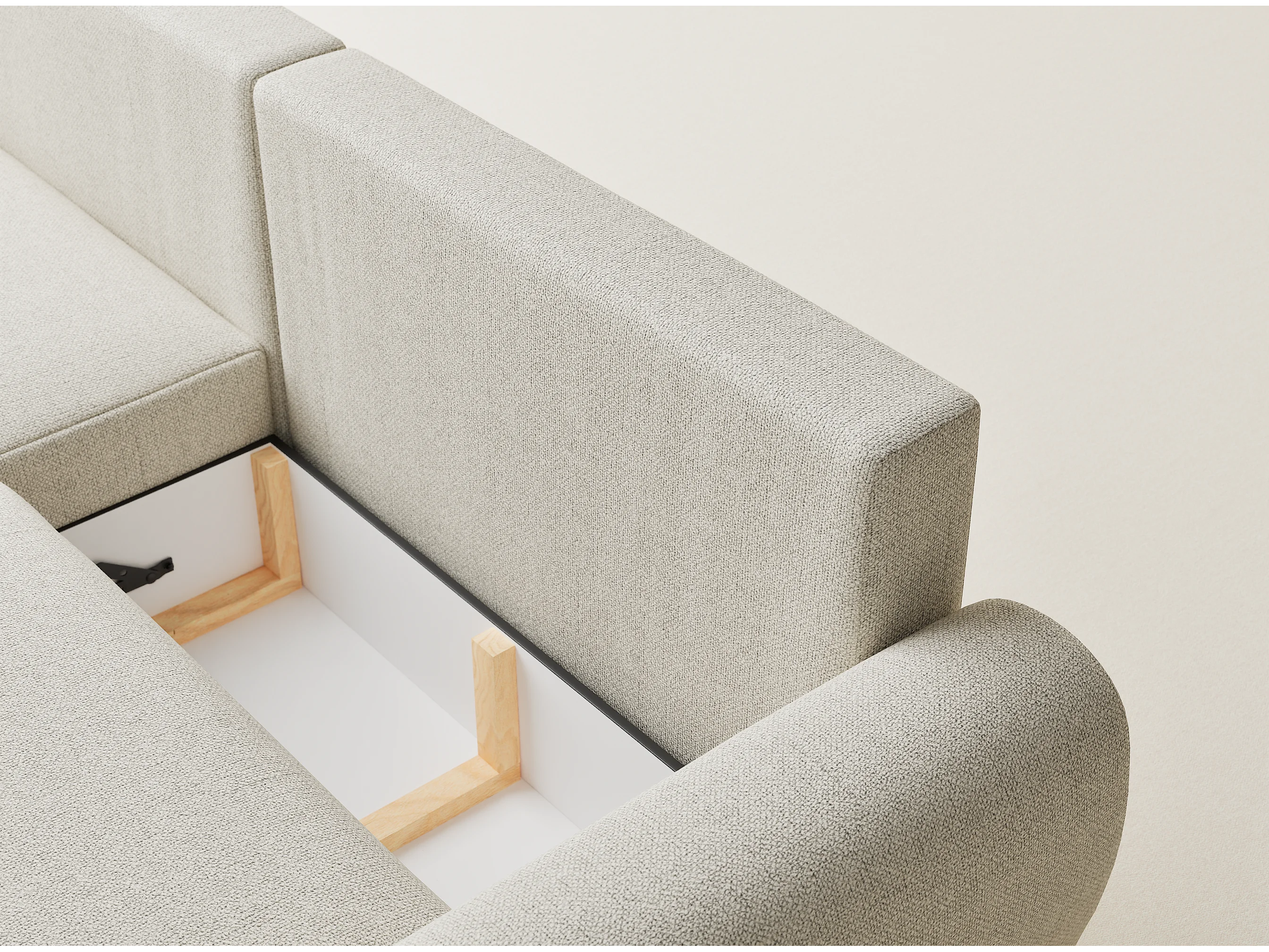 Hoekbank met slaapfunctie Numba in geweven stof - Driepersoons - creme