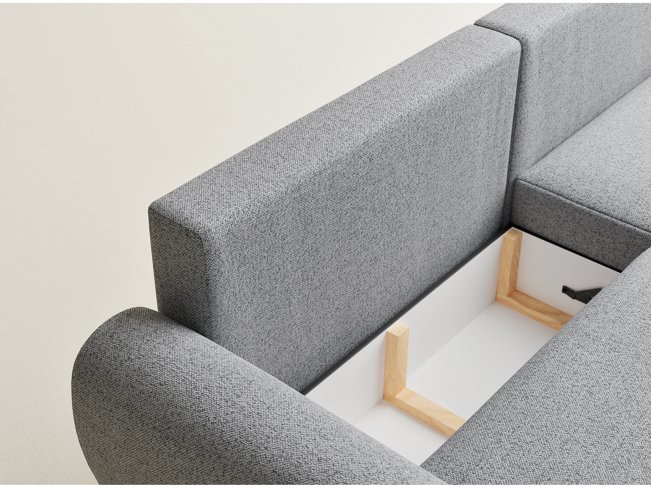 Hoekbank met slaapfunctie Numba in geweven stof - Driepersoons - lichtgrijs