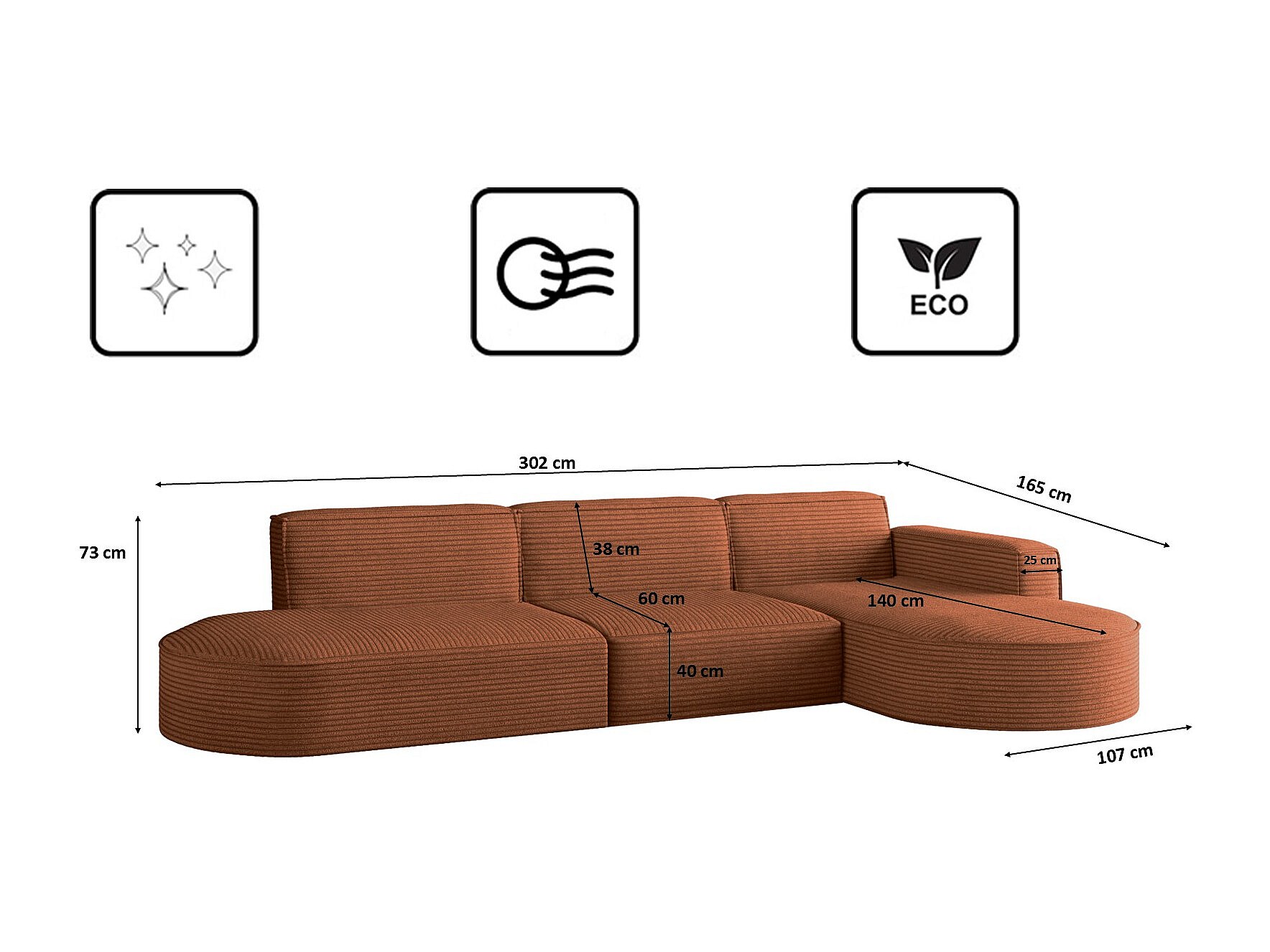 Hoekbank, Modena L-vorm, Poso stof, koper, rechts