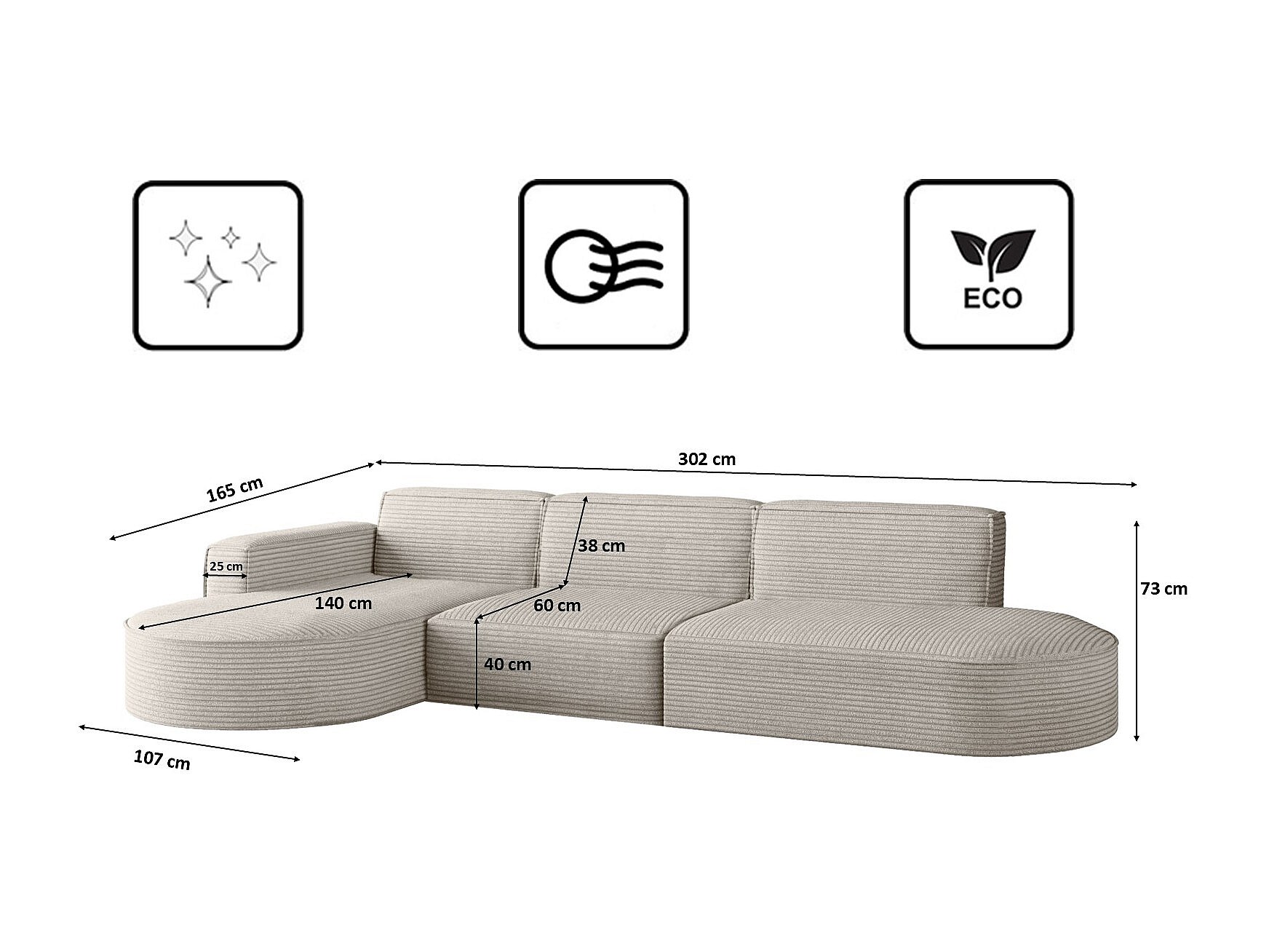 Hoekbank, Modena L-vorm, stof Poso, beige, links