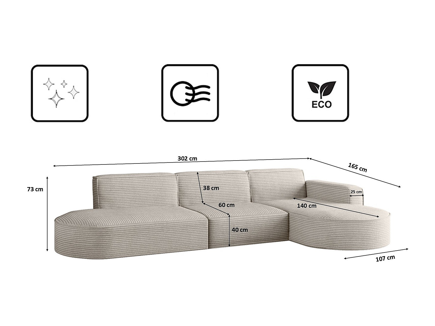 Hoekbank, Modena L-vorm, stof Poso, beige, rechts