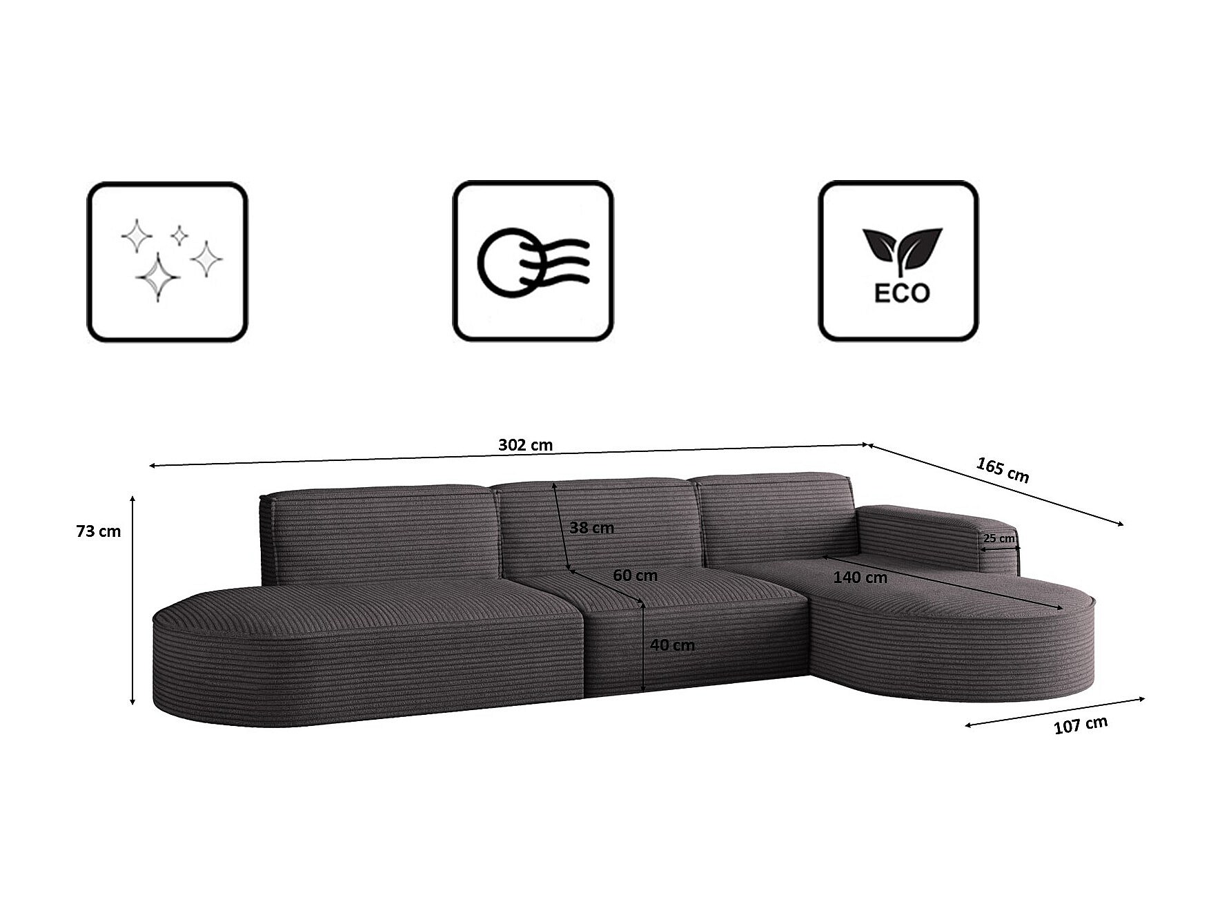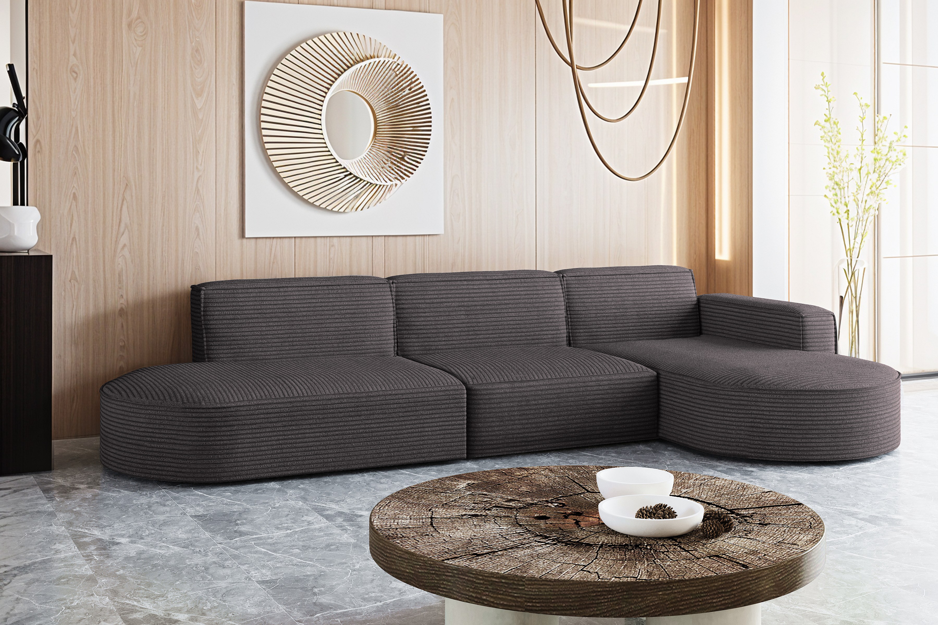 Hoekbank, Modena L-vorm, stof Poso, donkergrijs, rechts