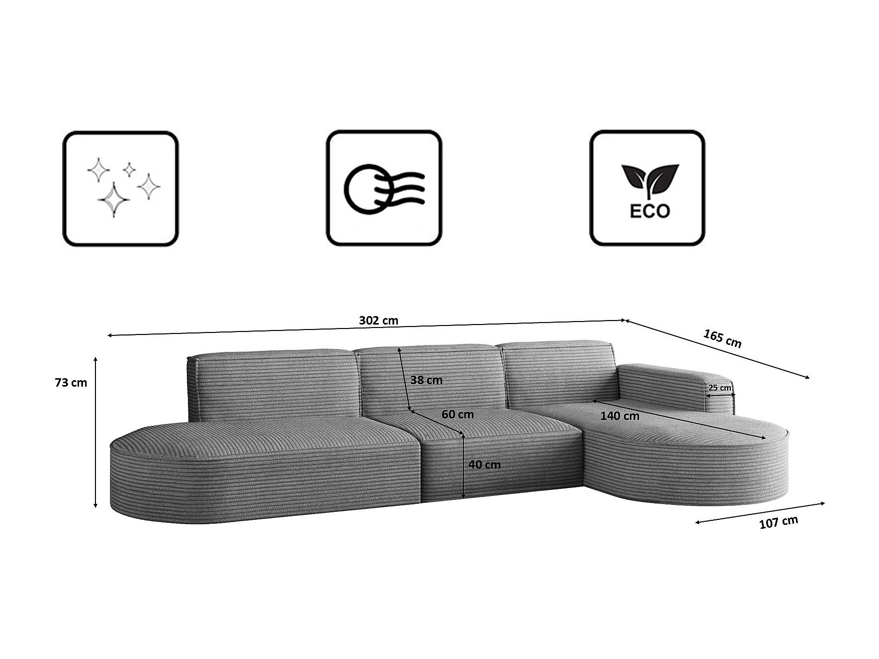 Hoekbank, Modena L-vorm, stof Poso, grijs, rechts