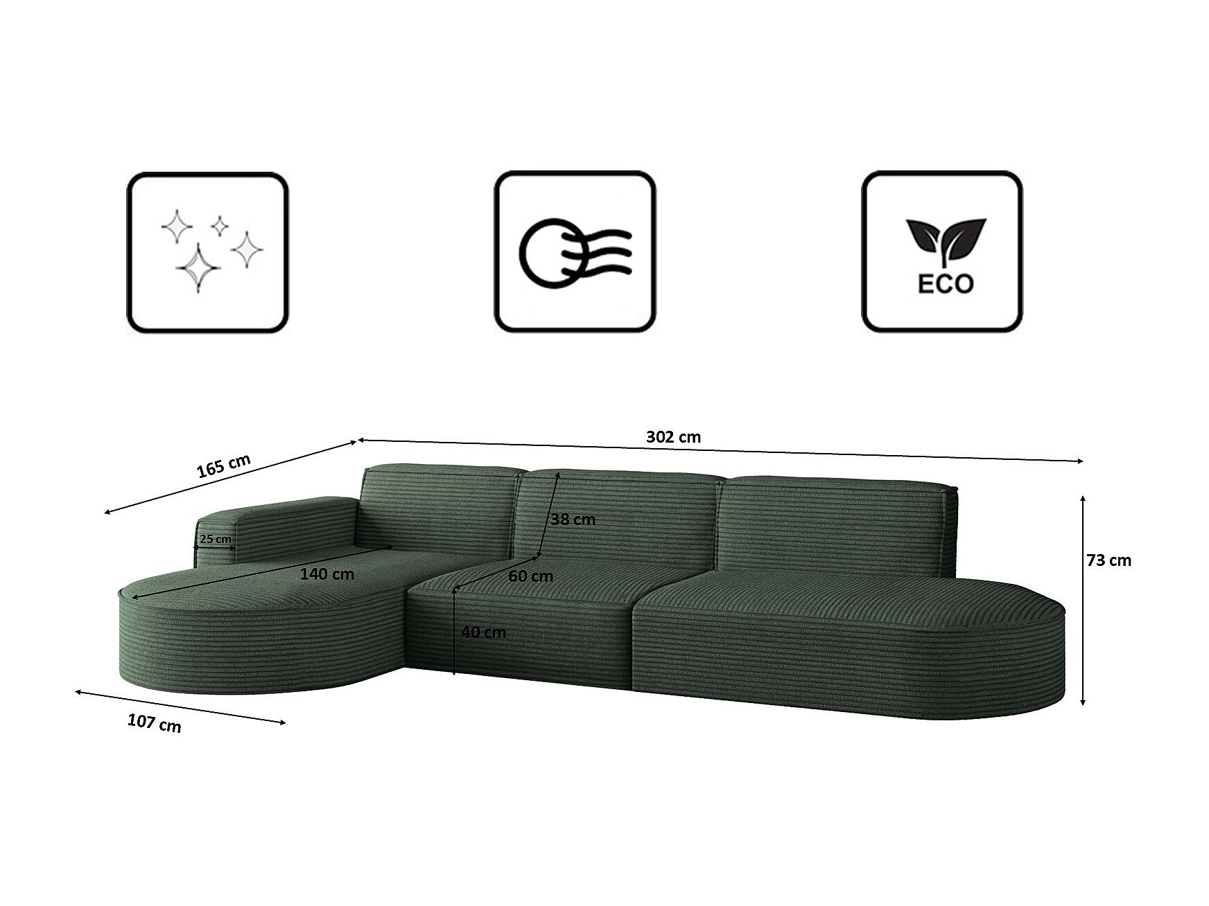 Hoekbank, Modena L-vorm, stof Poso, groen, links