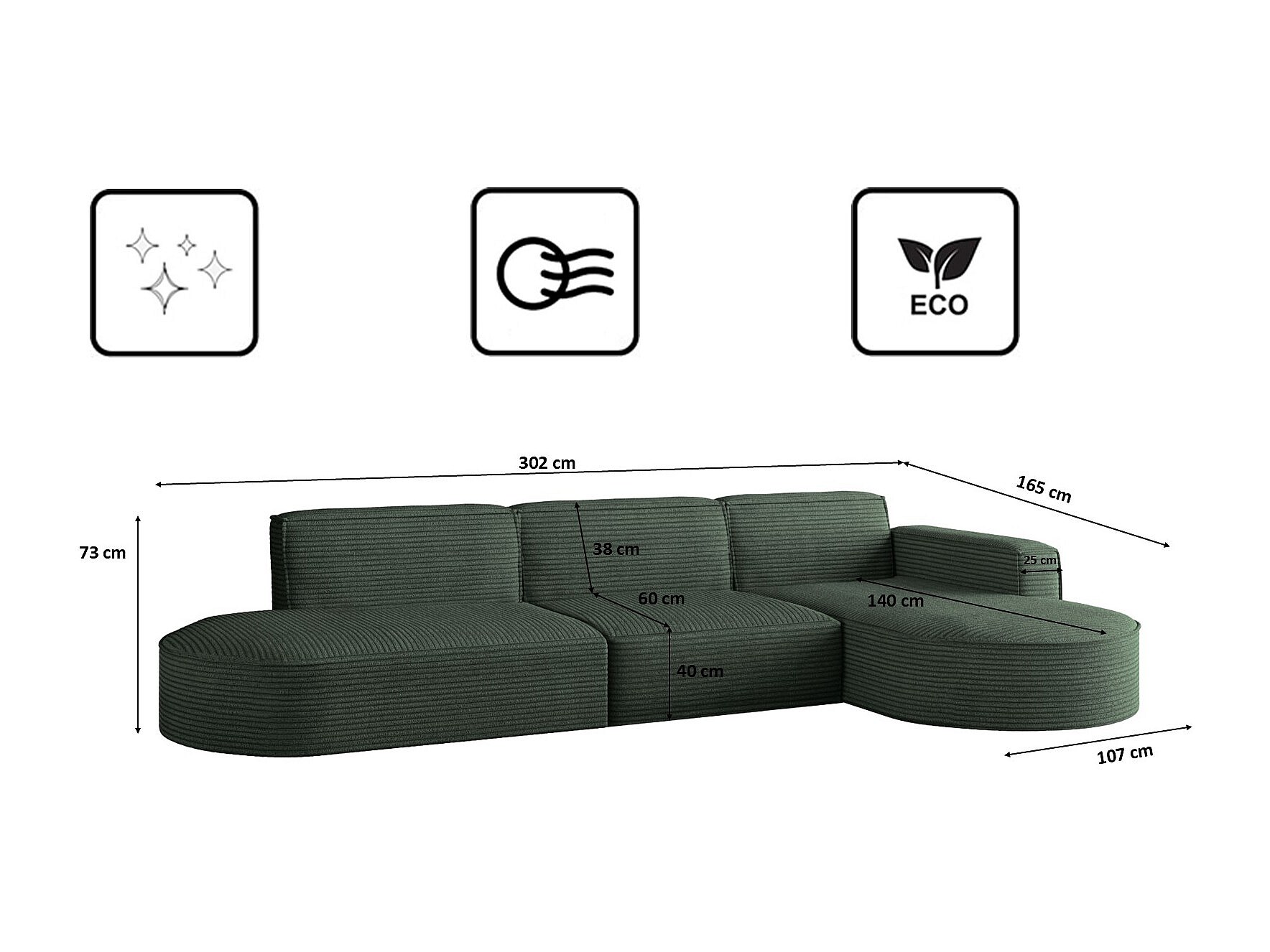 Hoekbank, Modena L-vorm, stof Poso, groen, rechts