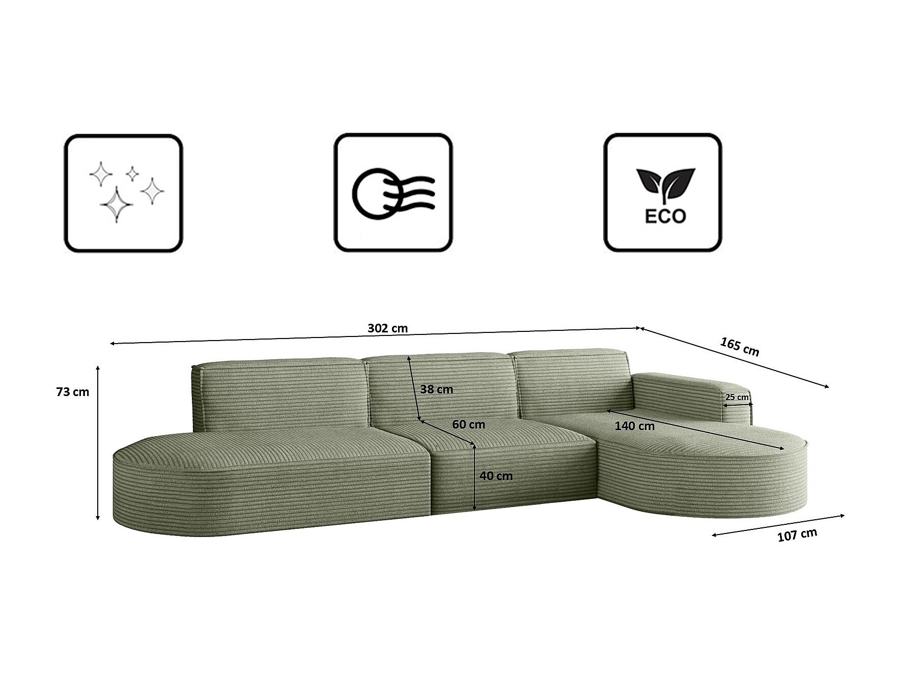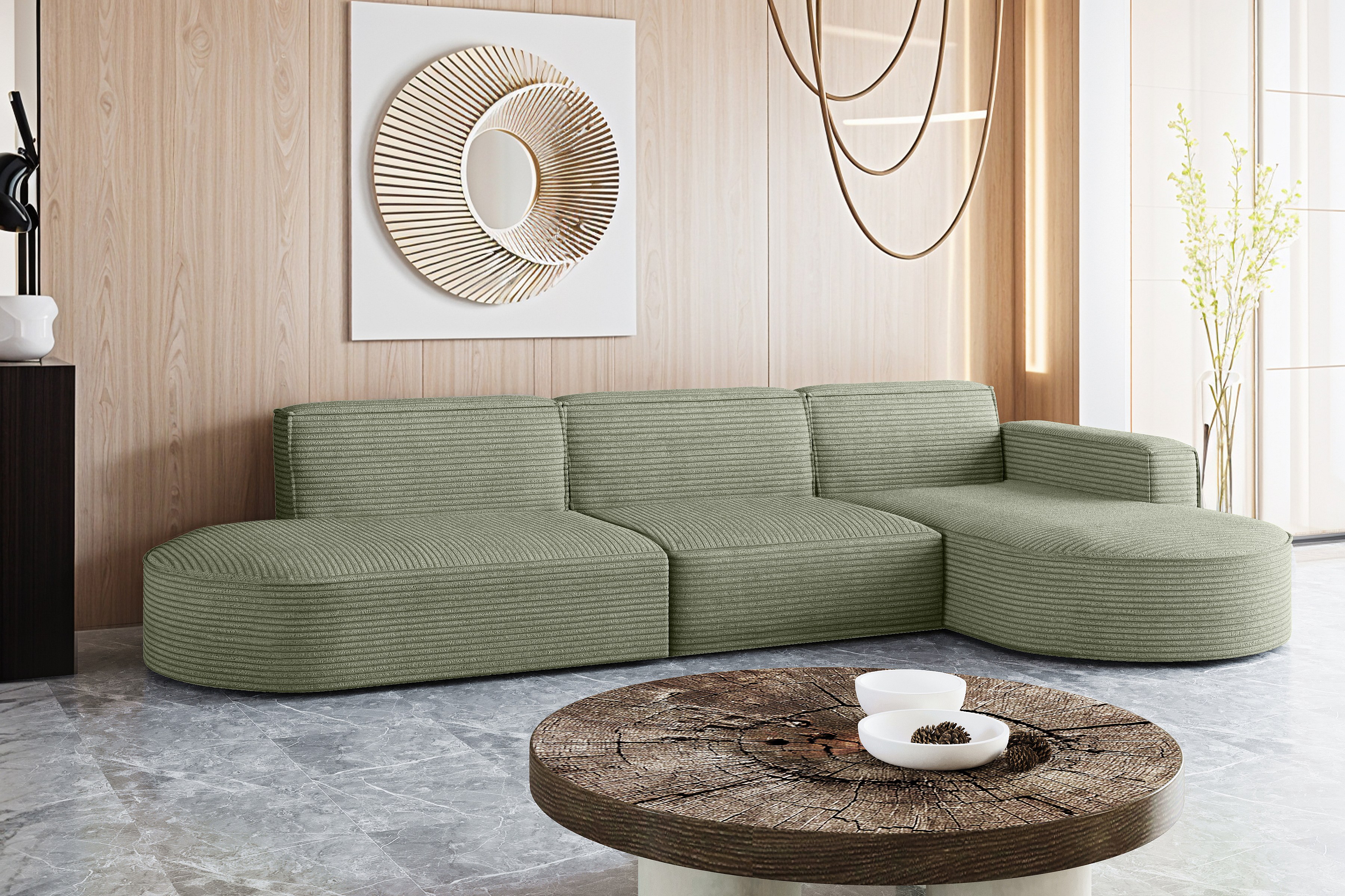 Hoekbank, Modena L-vorm, stof Poso, lichtgroen, rechts