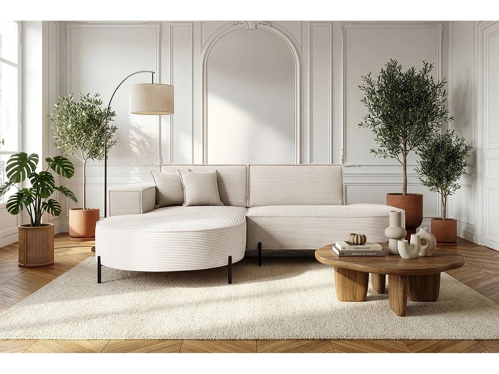 Hoekbank Parma Studio Hills, stof Poso, links, crème (105)