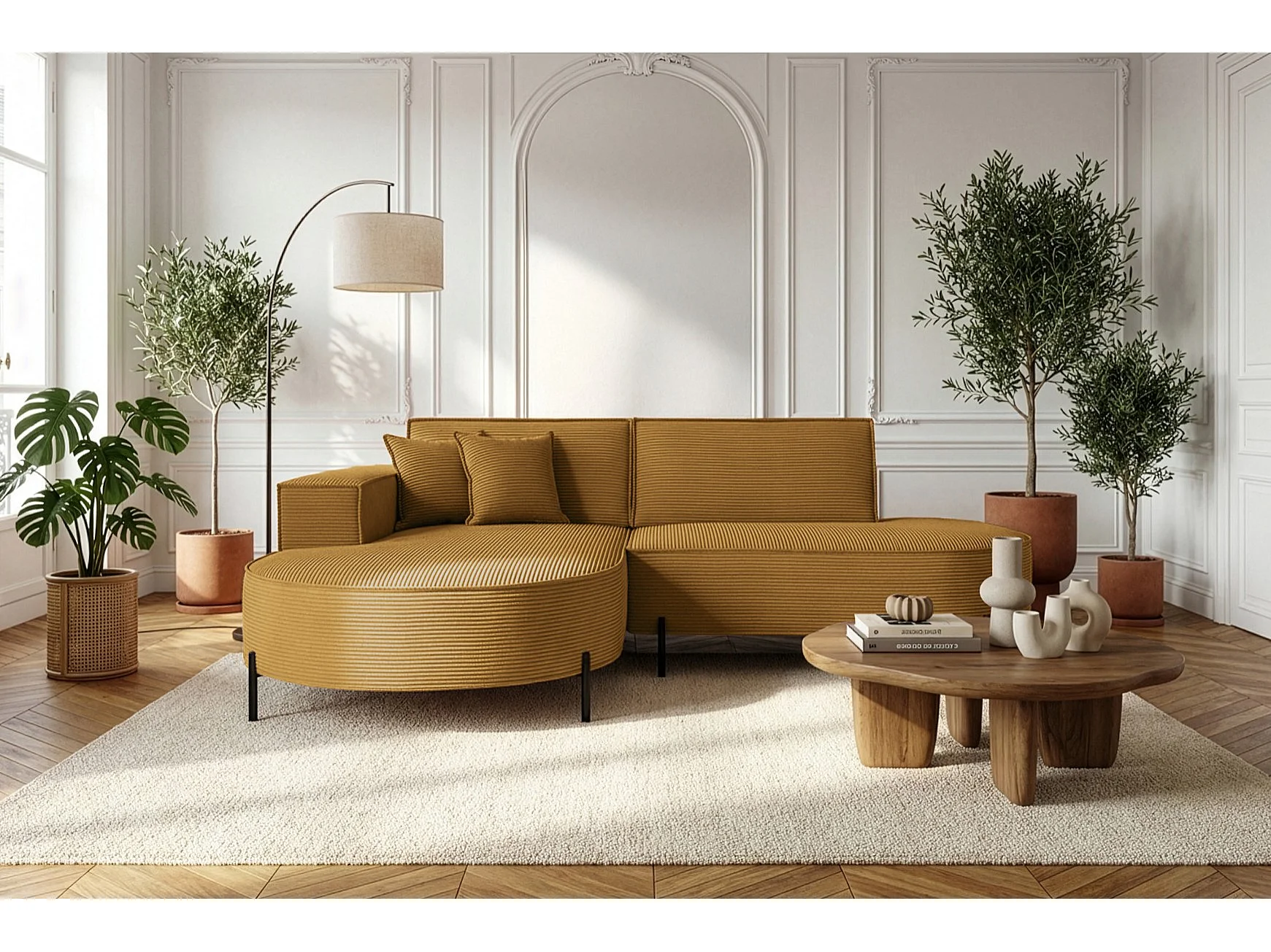 Hoekbank Parma Studio Hills, stof Poso, links, mosterdkleurig (01)