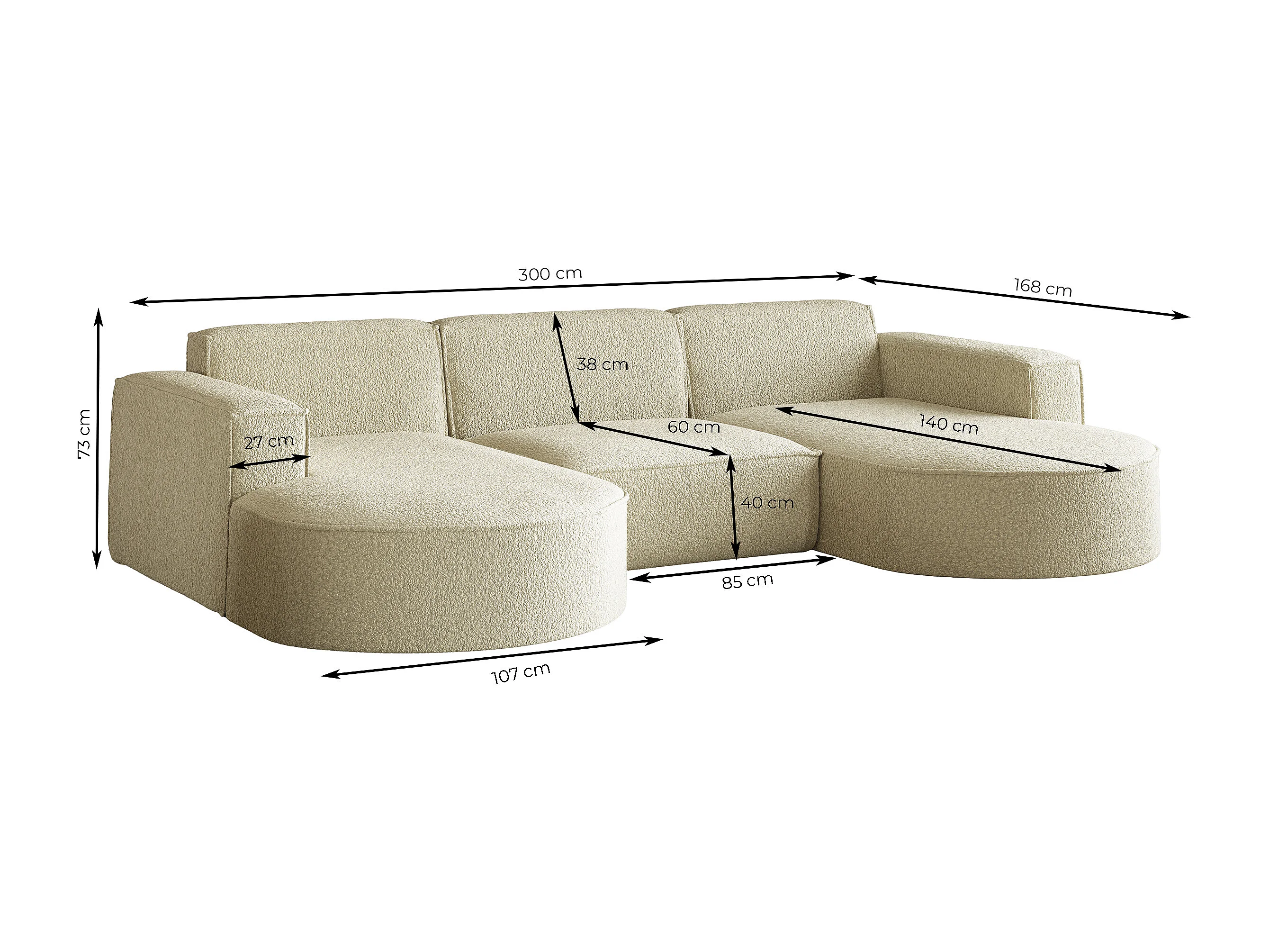 Hoekbank Parma Studio U, voor de woonkamer, stof Quelle, donkerbeige (18)