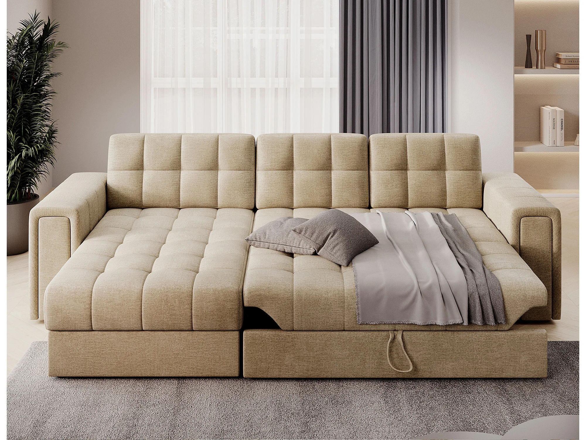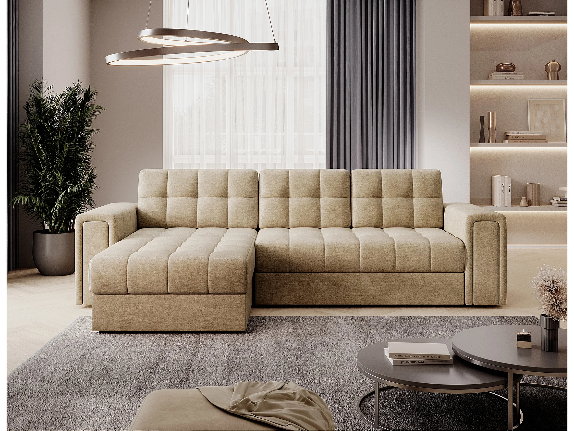 Klumann omkeerbare en converteerbare hoekbank – Elegantie en functionaliteit gecombineerd-Kleur Donker beige