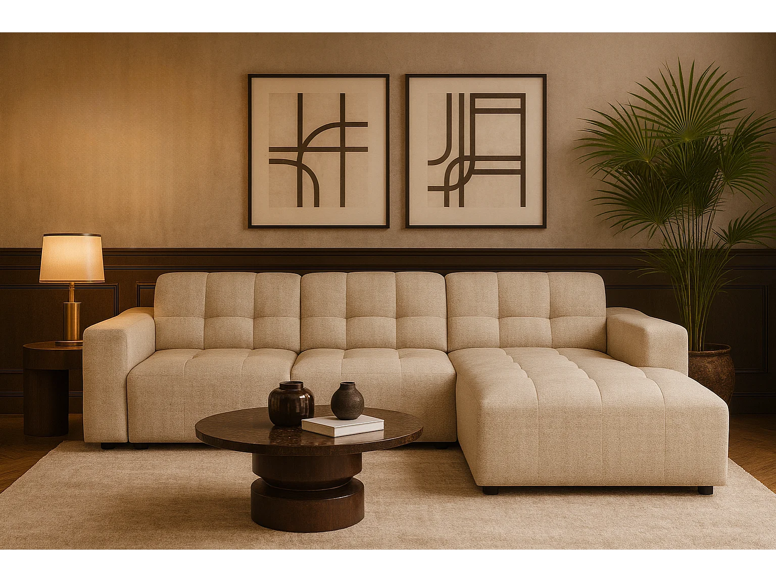 Hoekbank rechts Bergamo A – stof Raven 24 crème, 284×166×70 cm