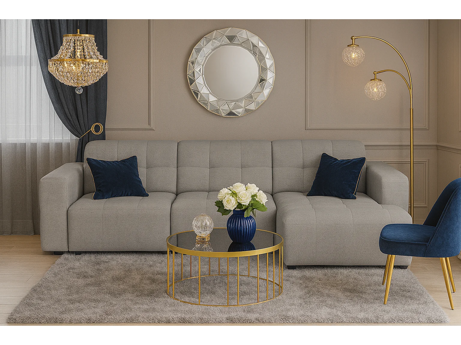 Hoekbank rechts Bergamo A– stof Raven 7tgrijs, 284×166×70 cm