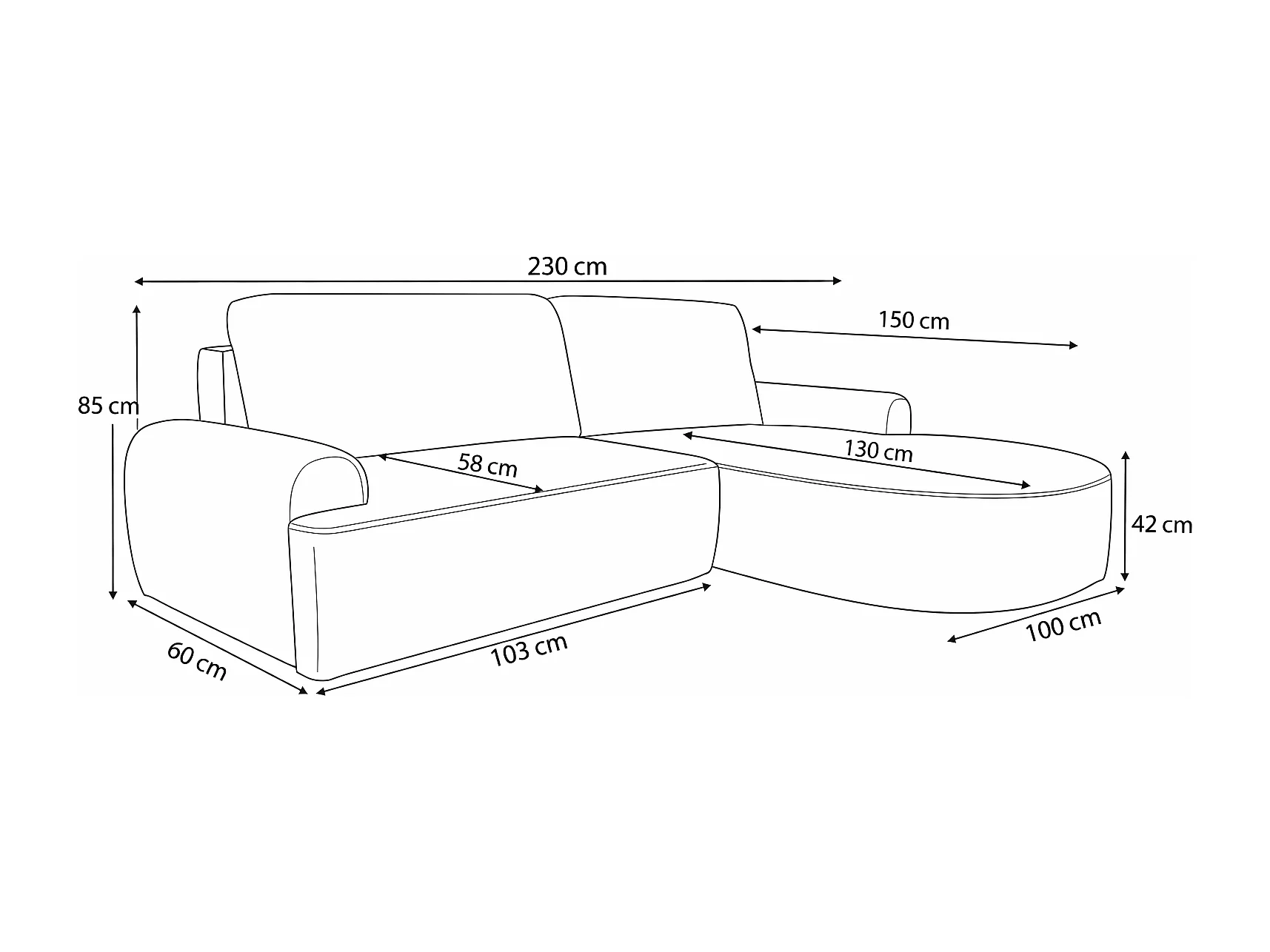 Hoekbank rechts in beige geweven stof, slijtvast, met slaapfunctie – ARTE PREMIUM