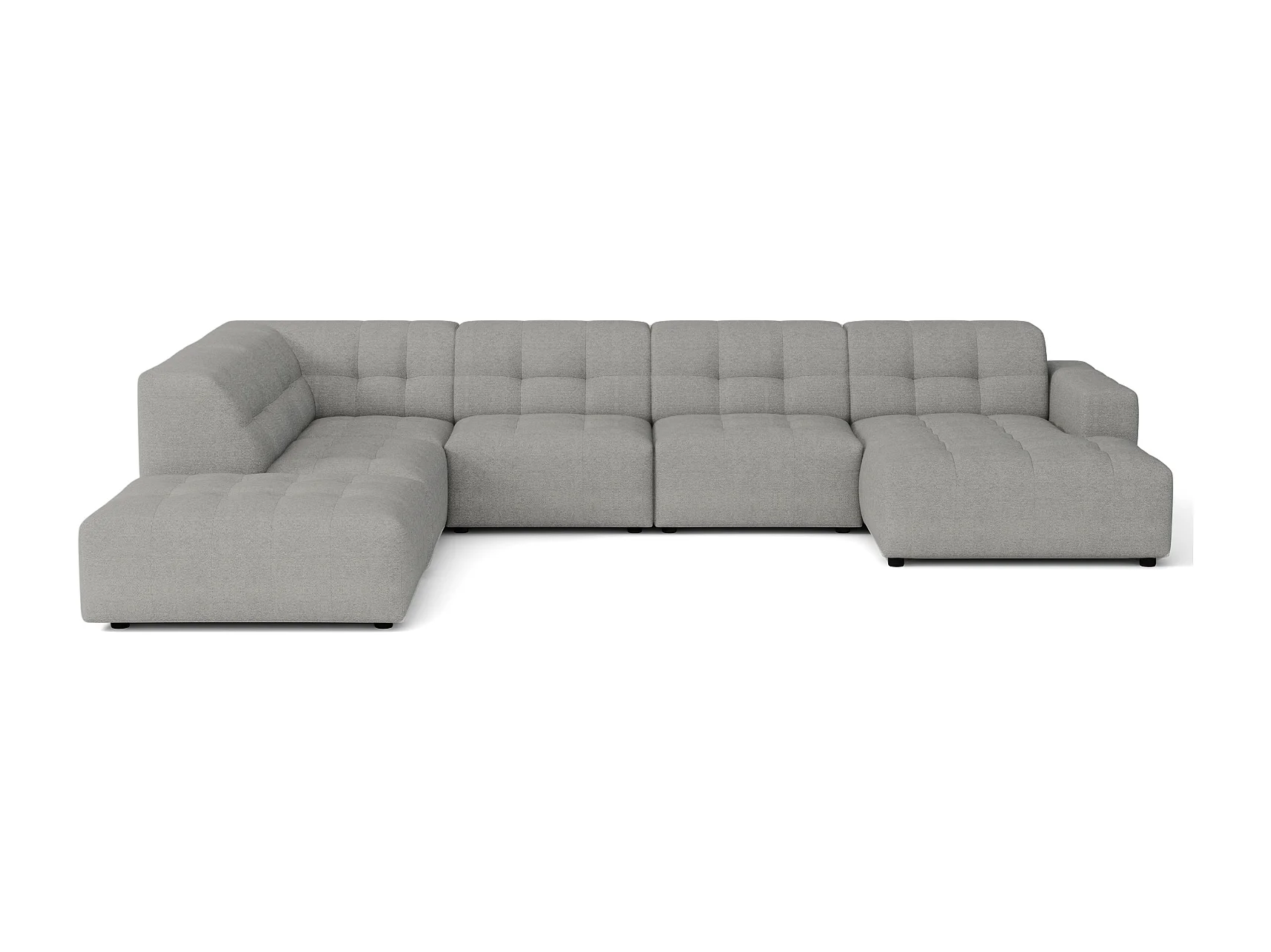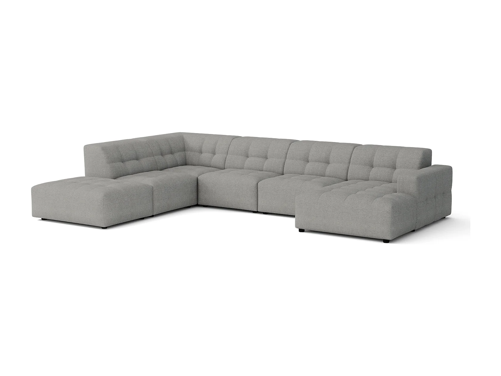 Hoekbank rechts met poef Bergamo C– stof Raven 7 grijs, 364x262x70 cm