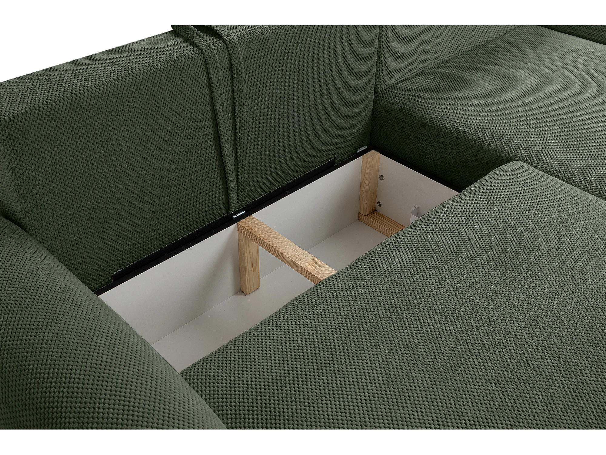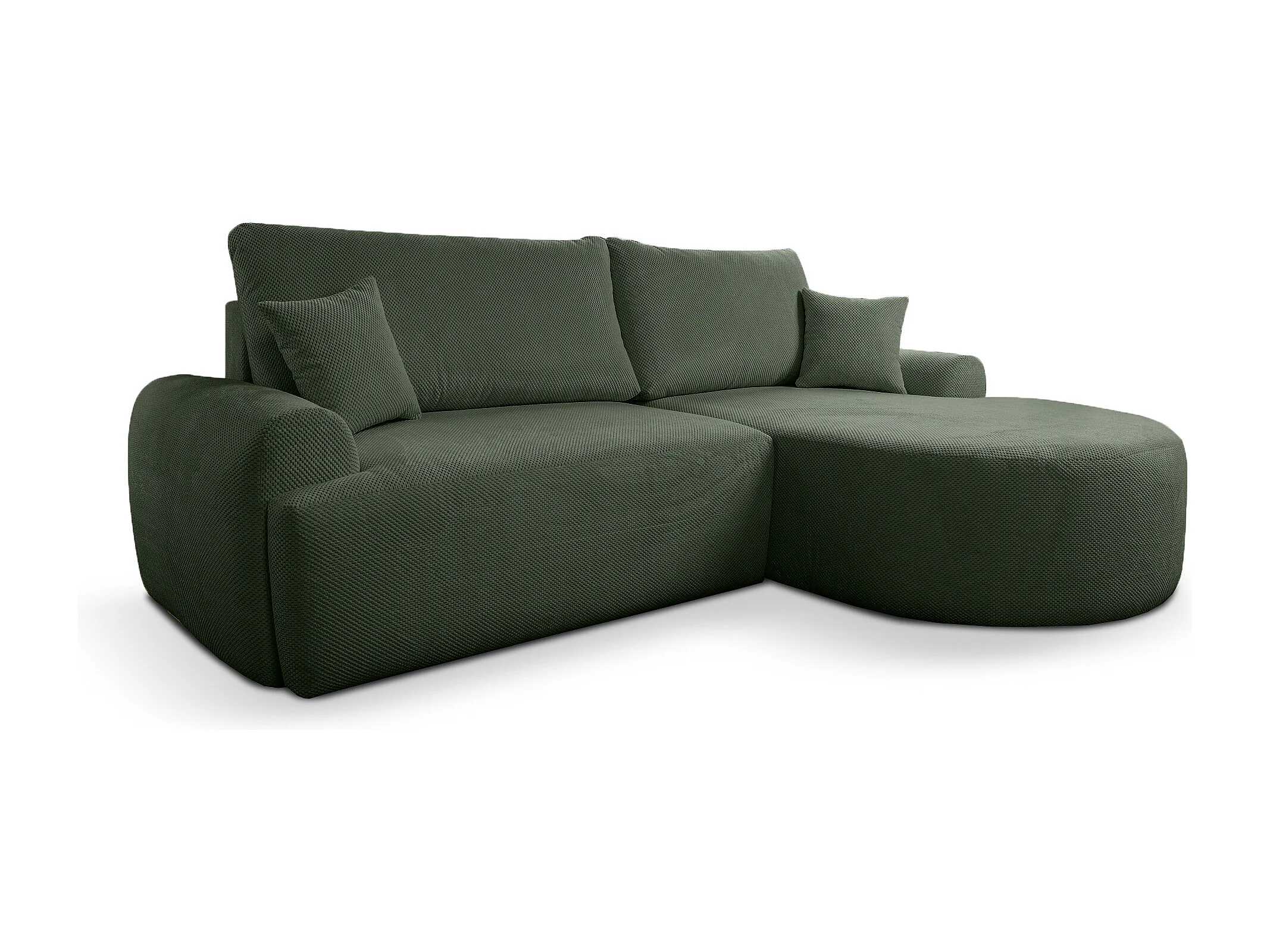 Hoekbank rechts met slaapfunctie en opbergruimte, flesgroen – ARTE PREMIUM, direct van de fabrikant