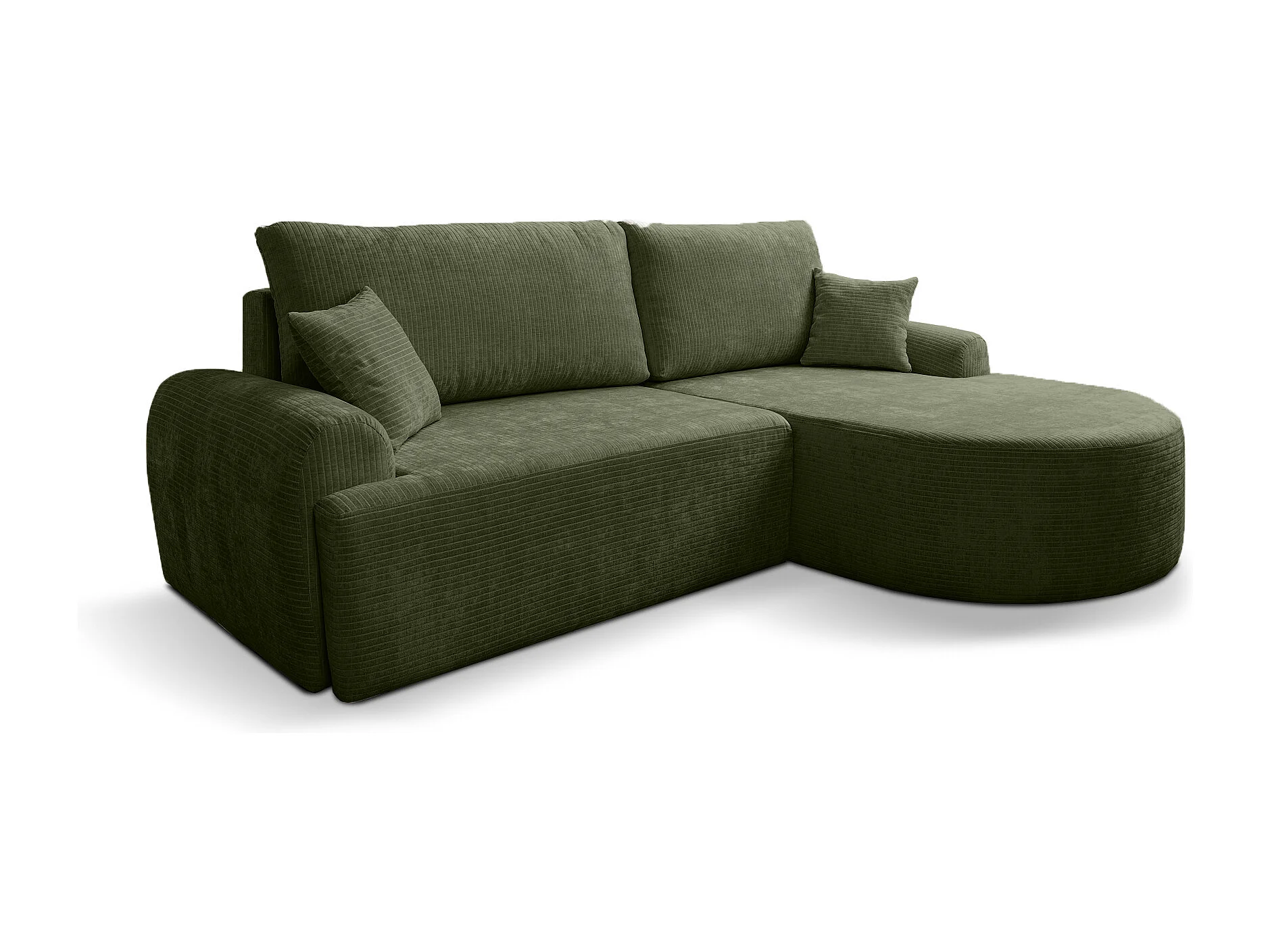 Hoekbank rechts met slaapfunctie en opbergruimte in flesgroen ribfluweel – ARTE PREMIUM, van fabrikant VINOTTI
