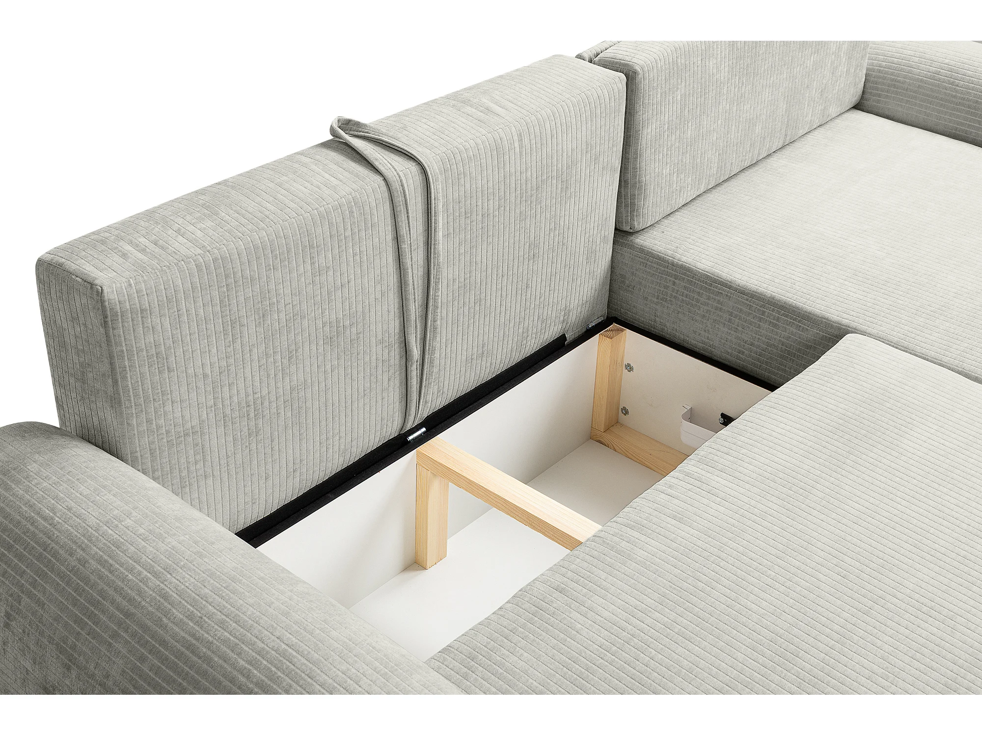 Hoekbank rechts met slaapfunctie en opbergruimte in groen ribfluweel – ARTE PREMIUM, van fabrikant VINOTTI