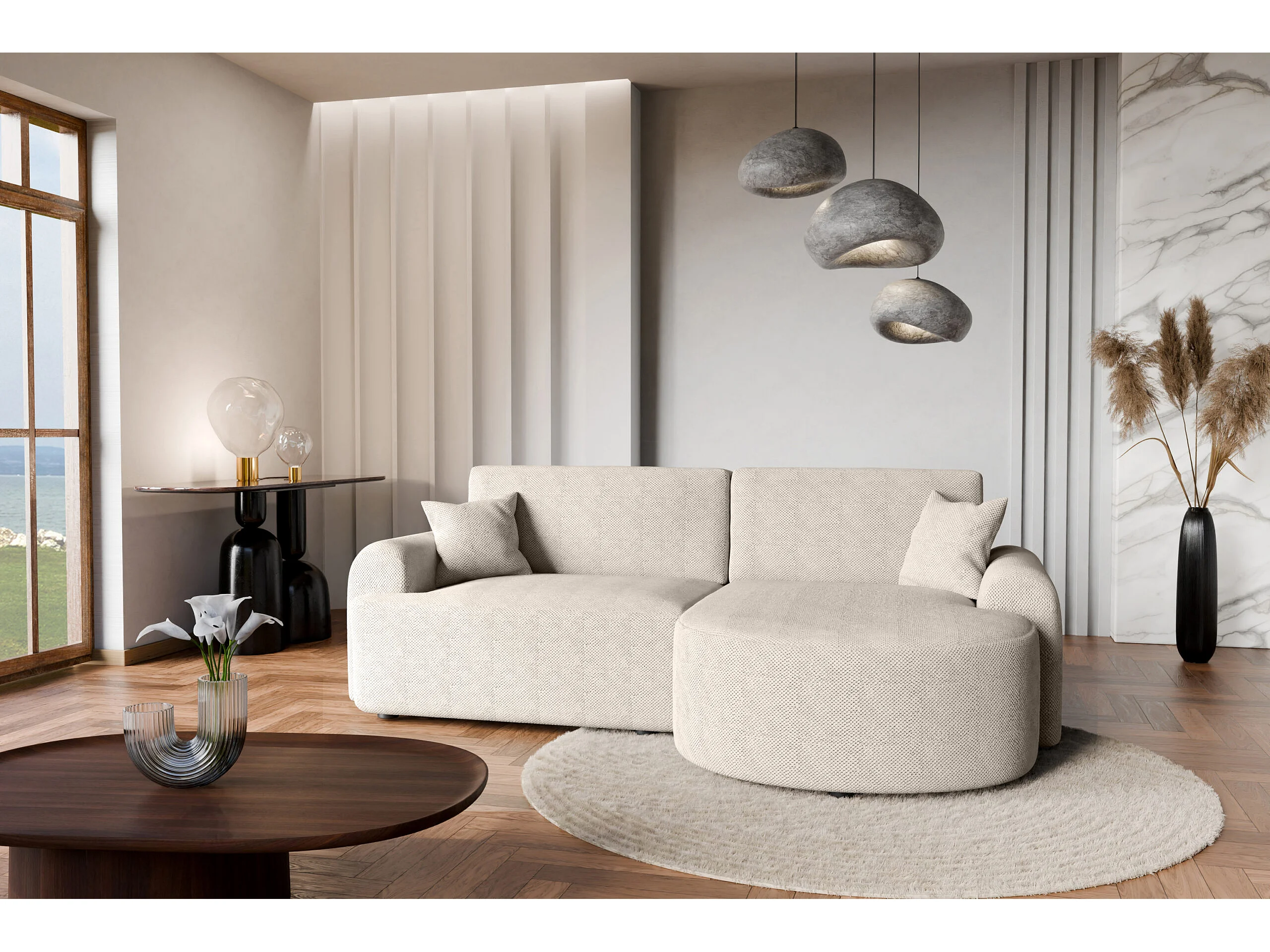 Hoekbank rechts met slaapfunctie en opbergruimte, romig – ARTE PREMIUM, direct van de fabrikant