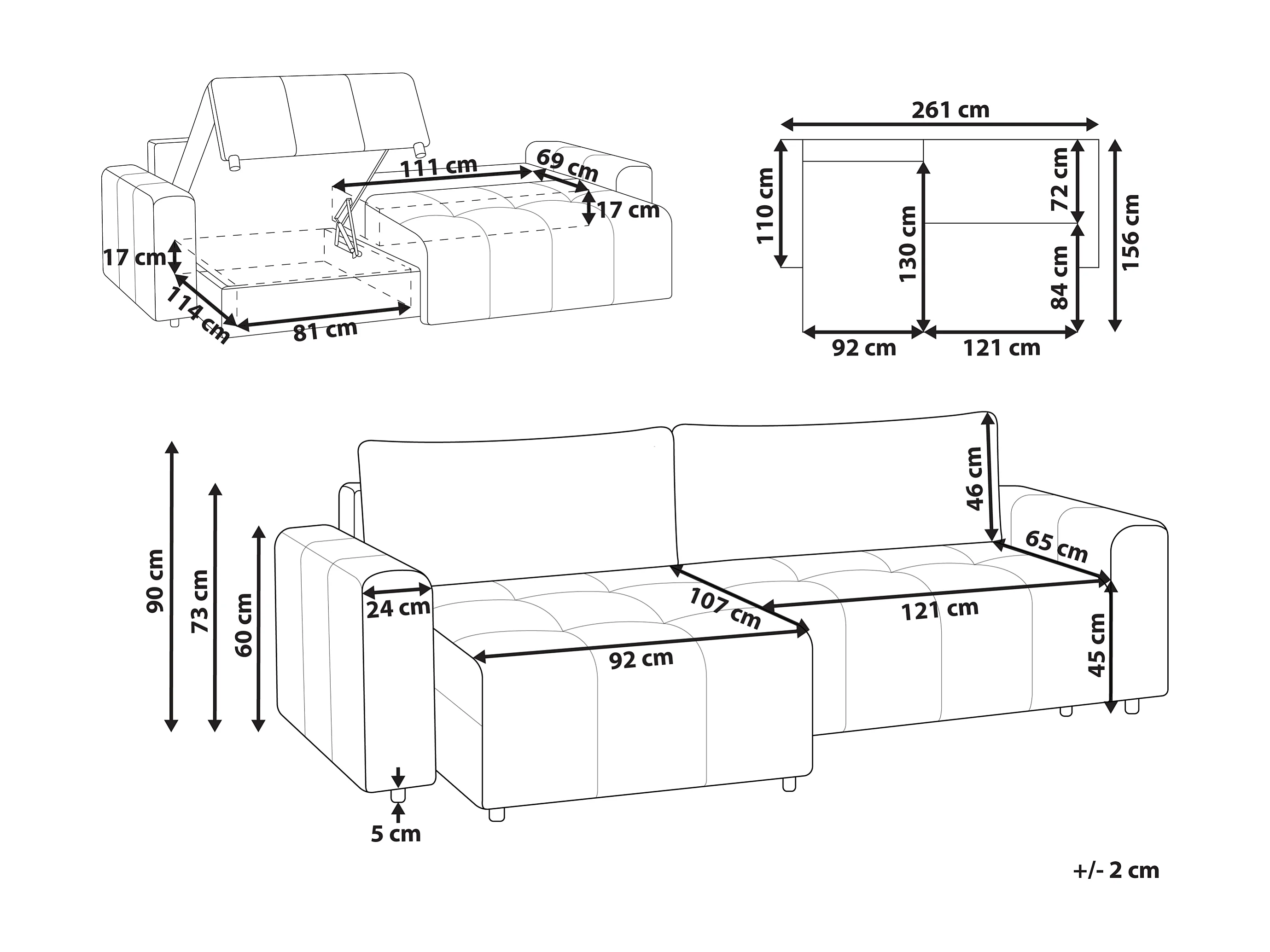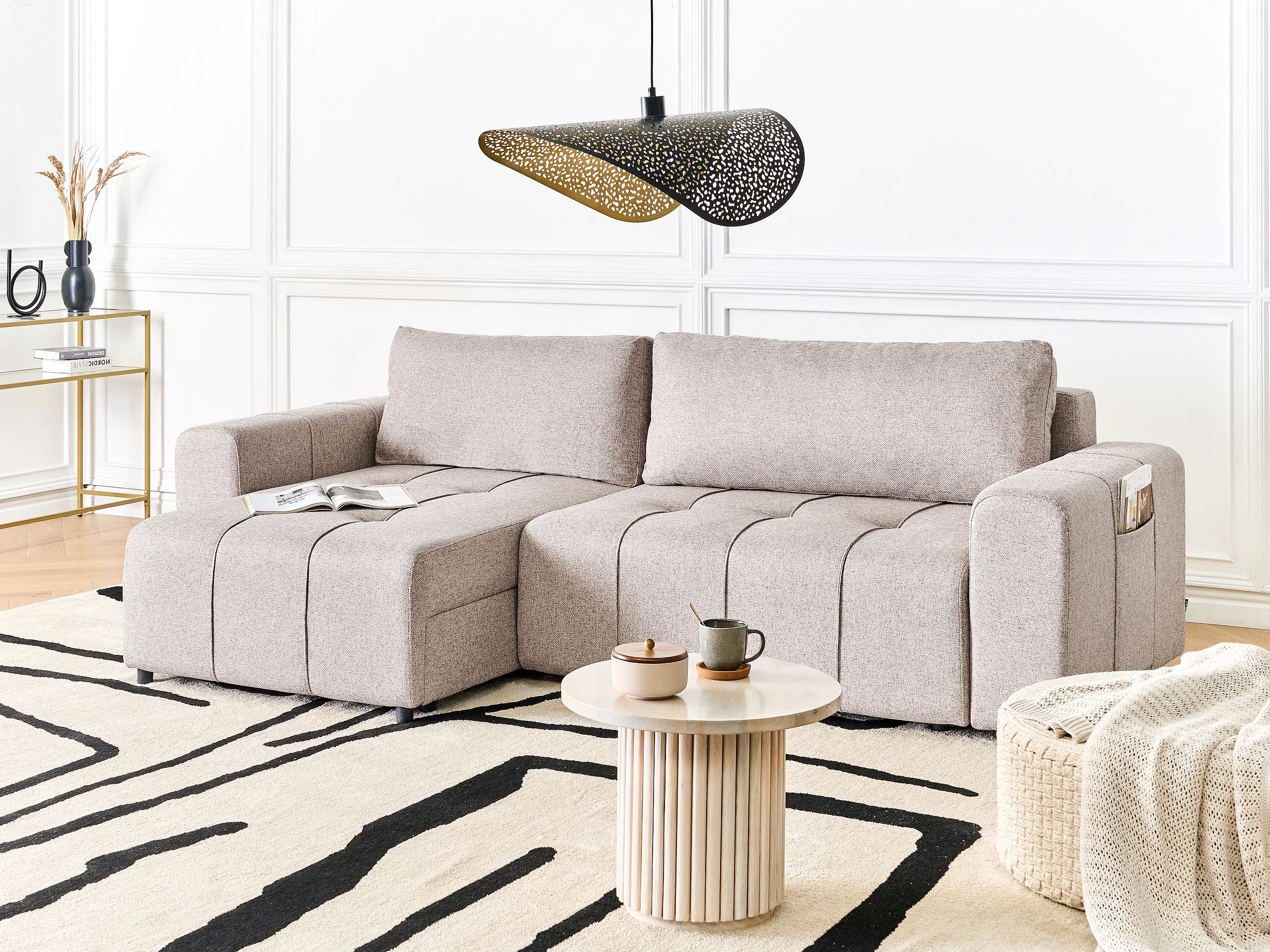 Hoekslaapbank INNVIK Stof Lichtbruin met opbergruimte 3-zitter Rechterzijde