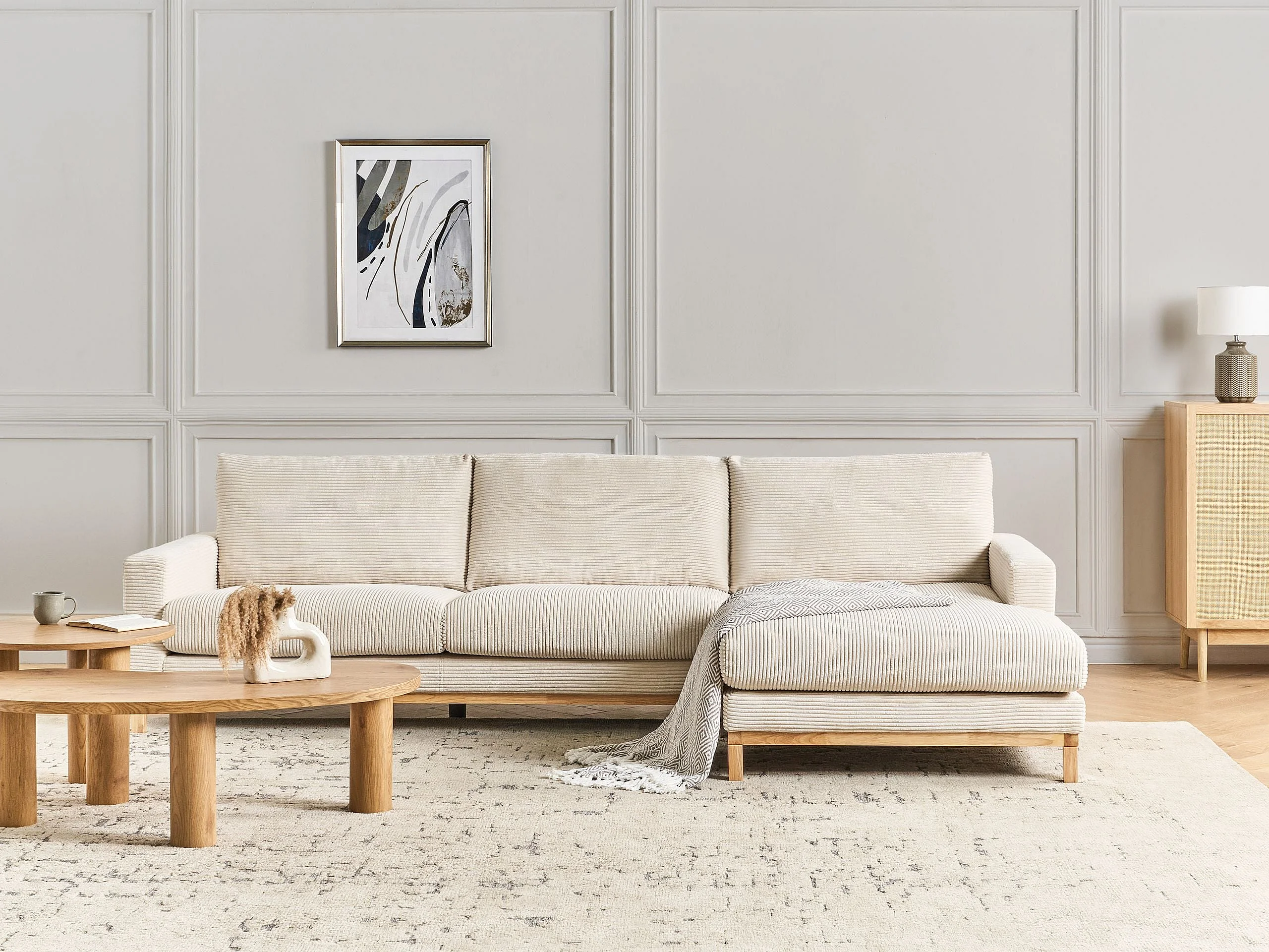Hoekbank SIGGARD Corduroy Lichtbeige 4-zitter Linkerzijde