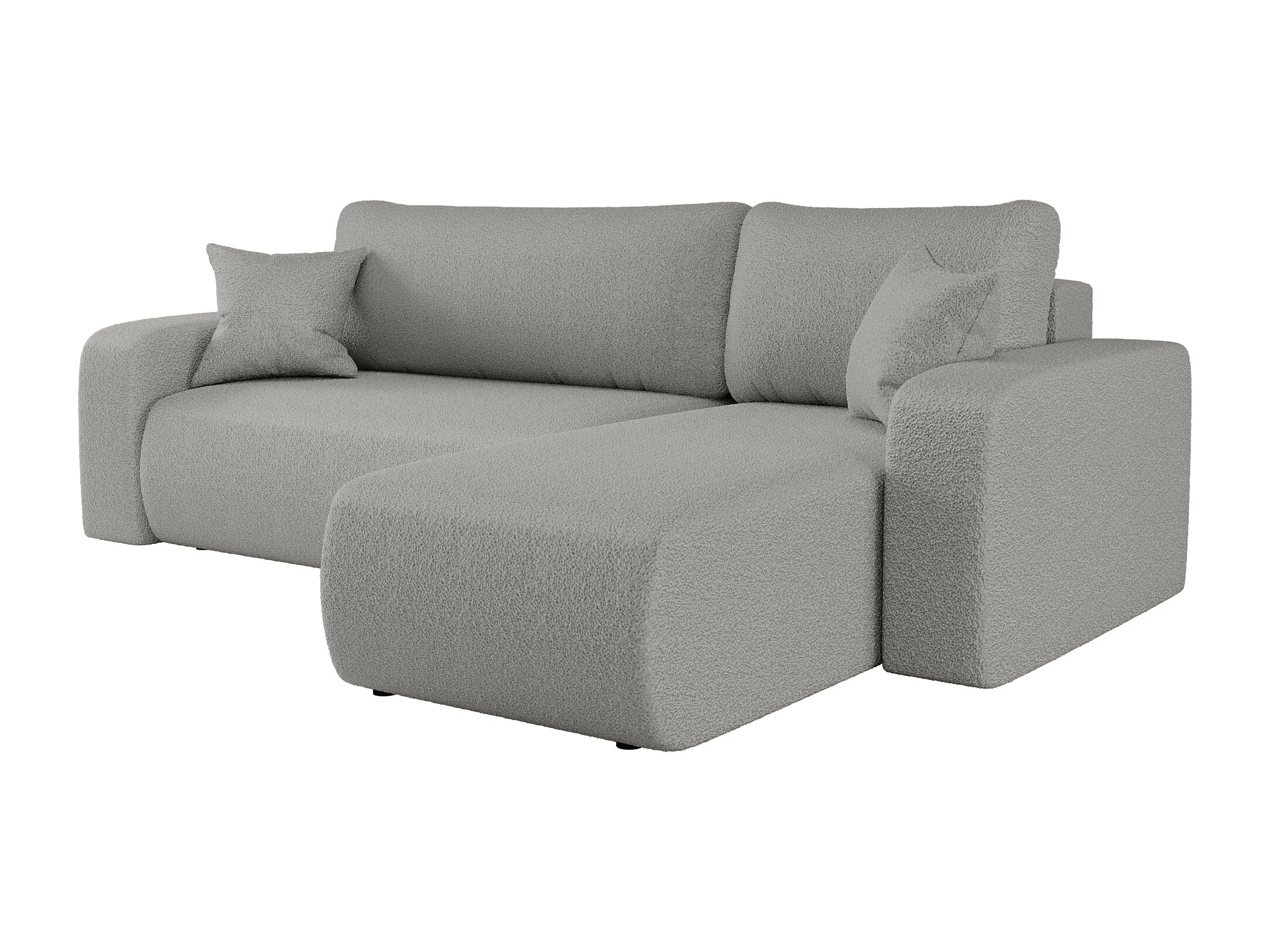Hoekbank slaapbank Piano L met slaapfunctie en universele opbergruimte, in grijze bouclé stof – van de fabrikant VINOTTI