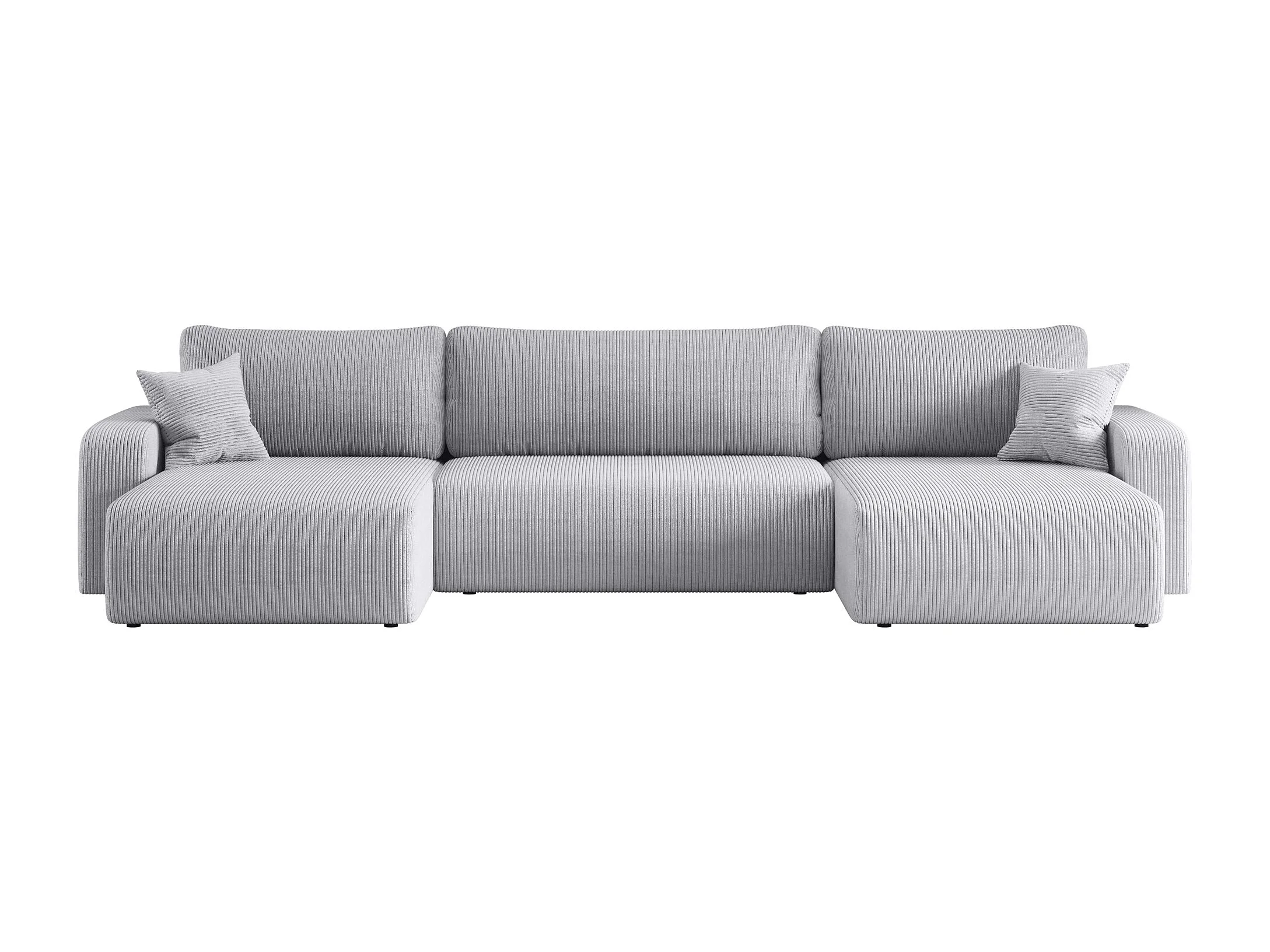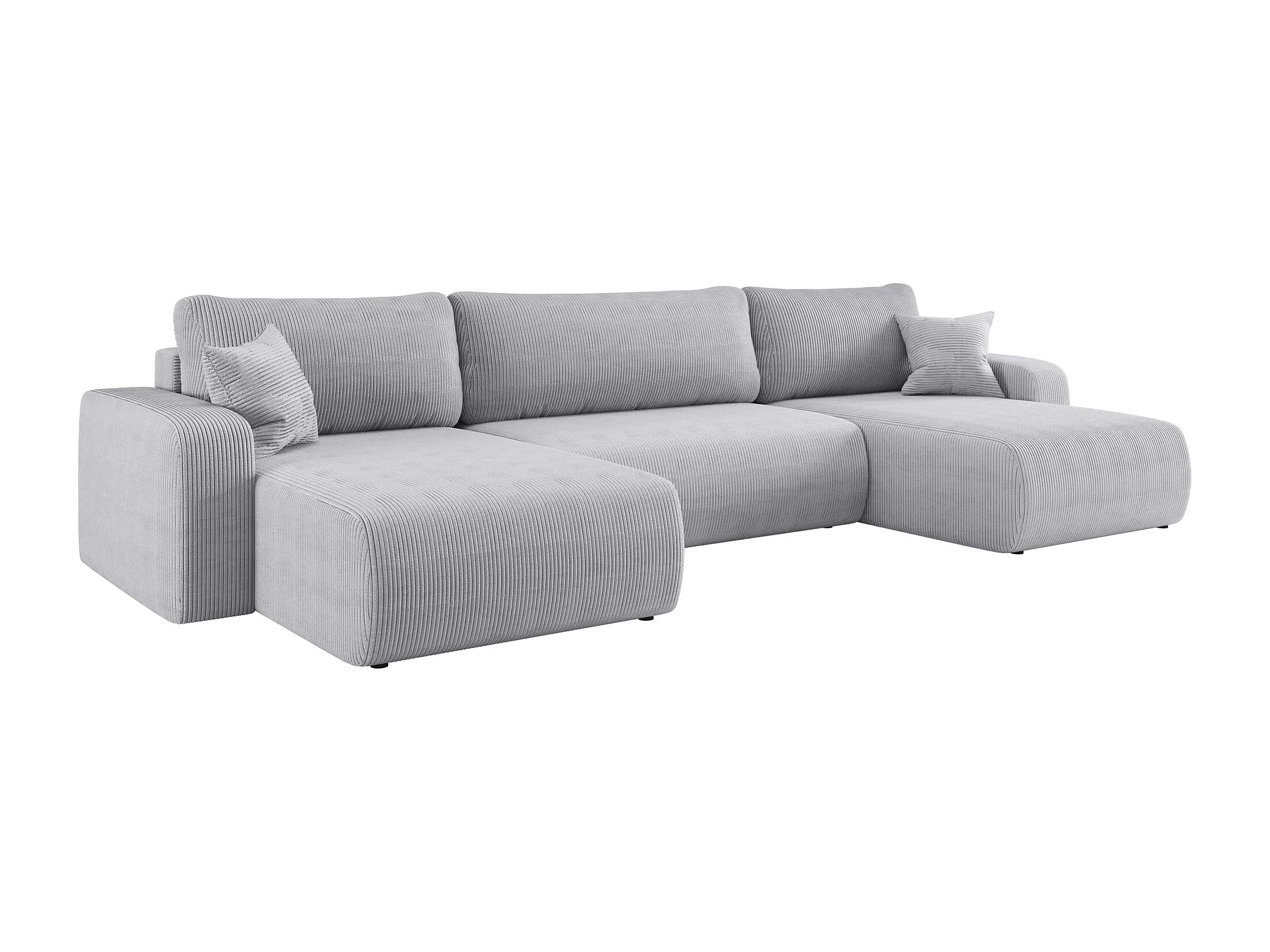 Hoekbank slaapbank Piano U met slaapfunctie, universele opbergruimte, in lichtgrijs ribfluweel – van de fabrikant VINOTTI