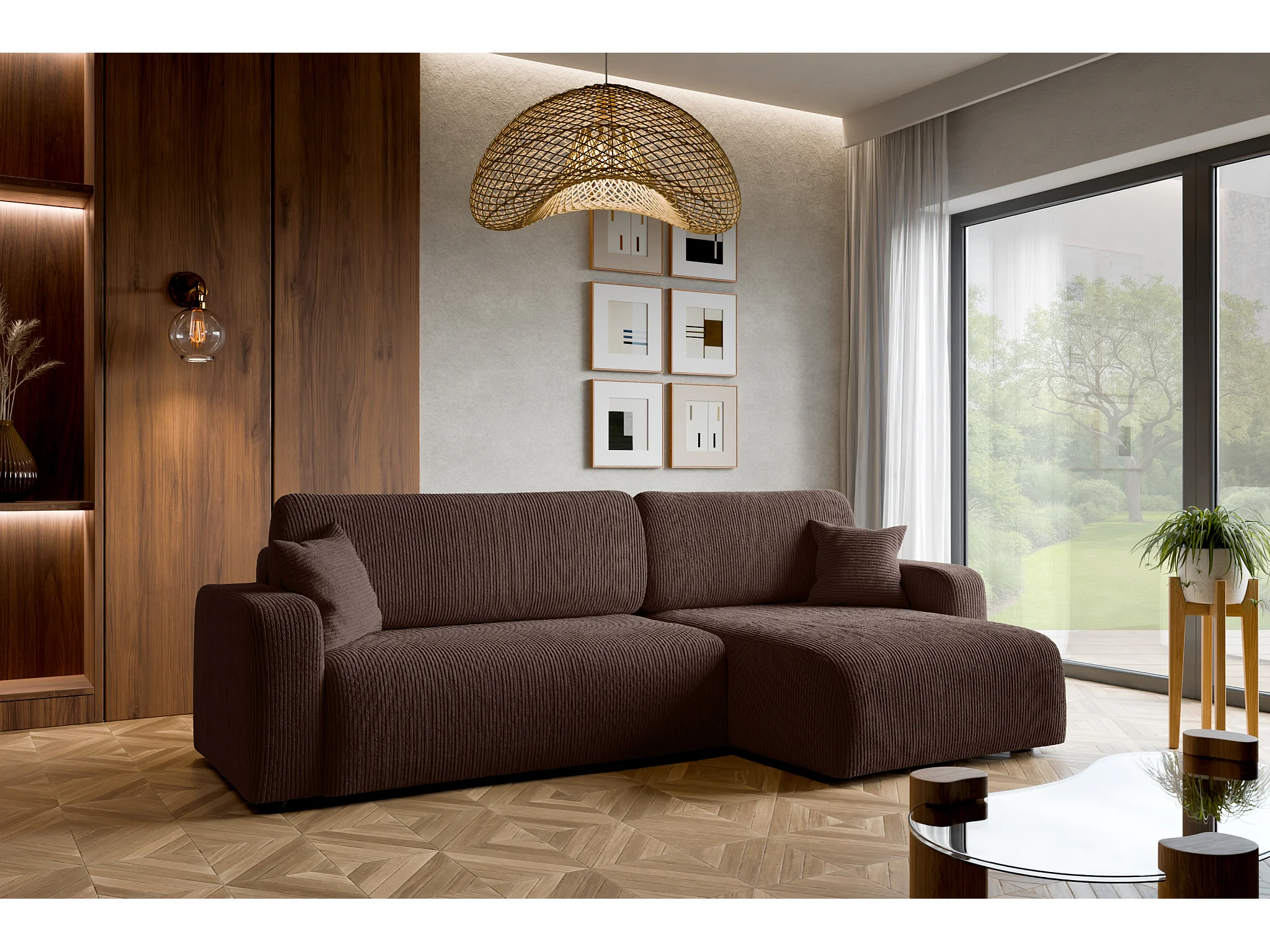 Hoekbank slaapbank Piano XL met slaapfunctie, universele opbergruimte, in chocoladebruin ribfluweel – van de fabrikant VINOTTI