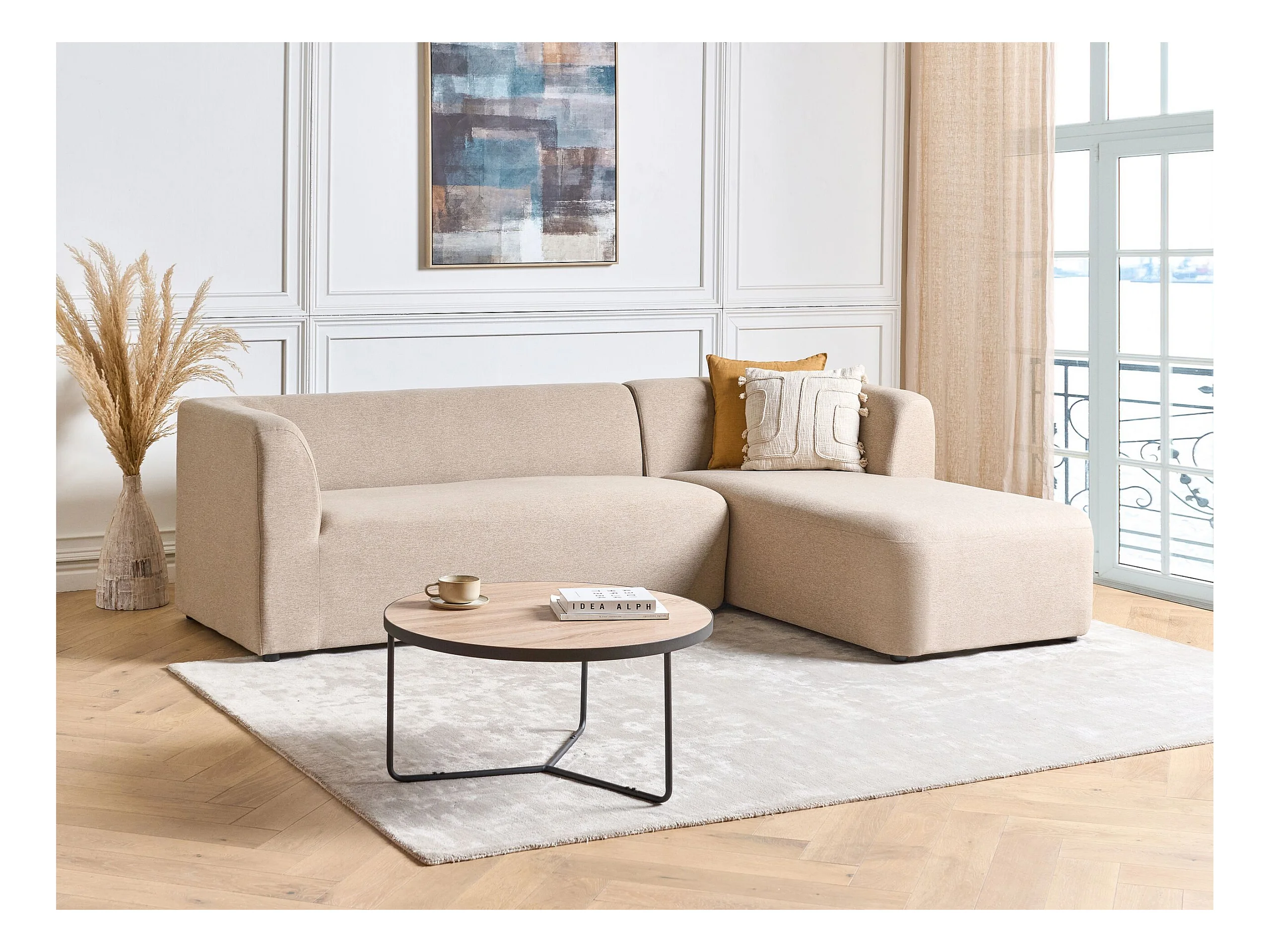 Hoekbank LAXA Stof Beige 4-zitter Linkerzijde