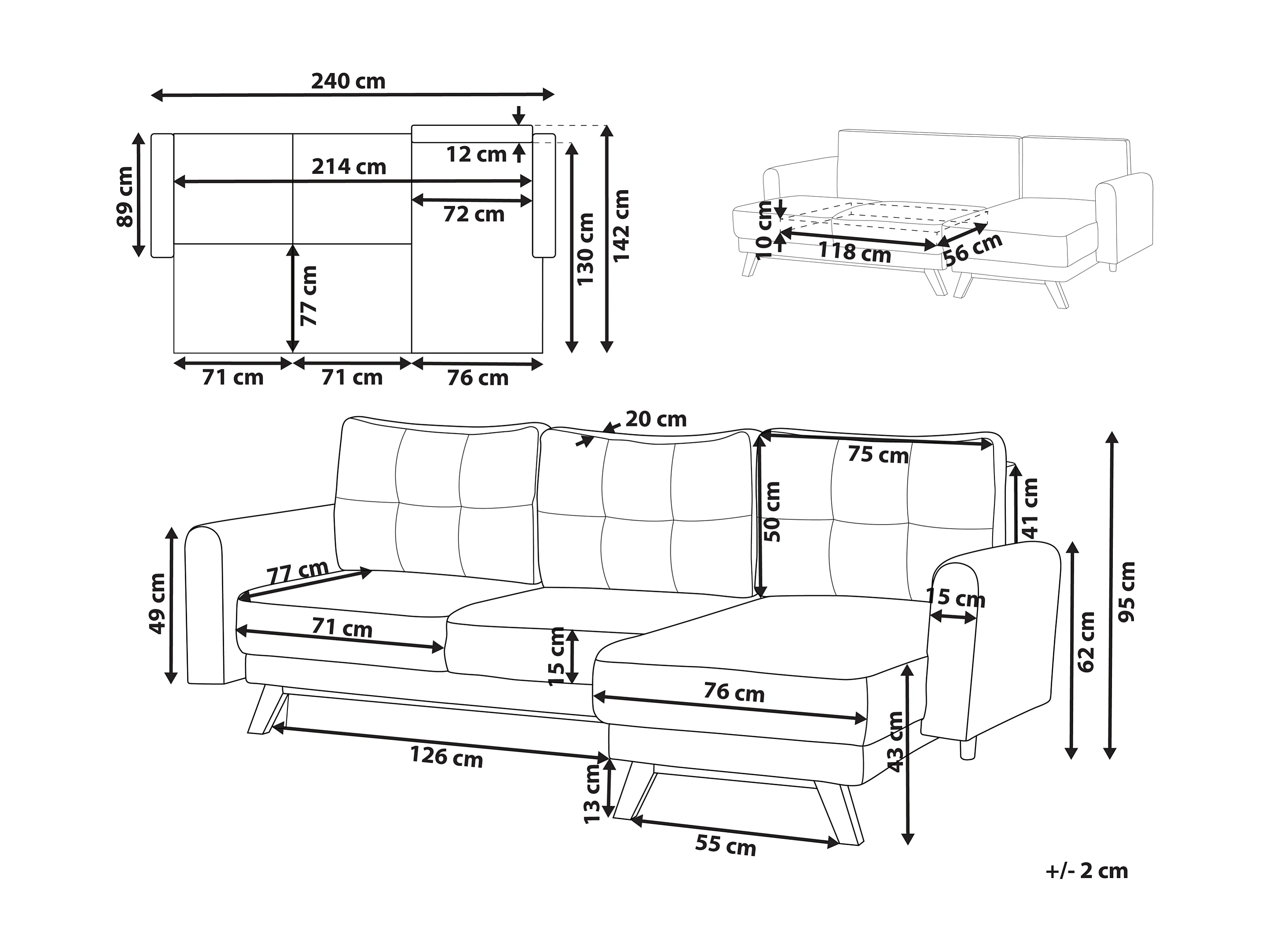 Slaapbank SIRO Stof Lichtbeige met opbergruimte 3-zitter Linkerzijde