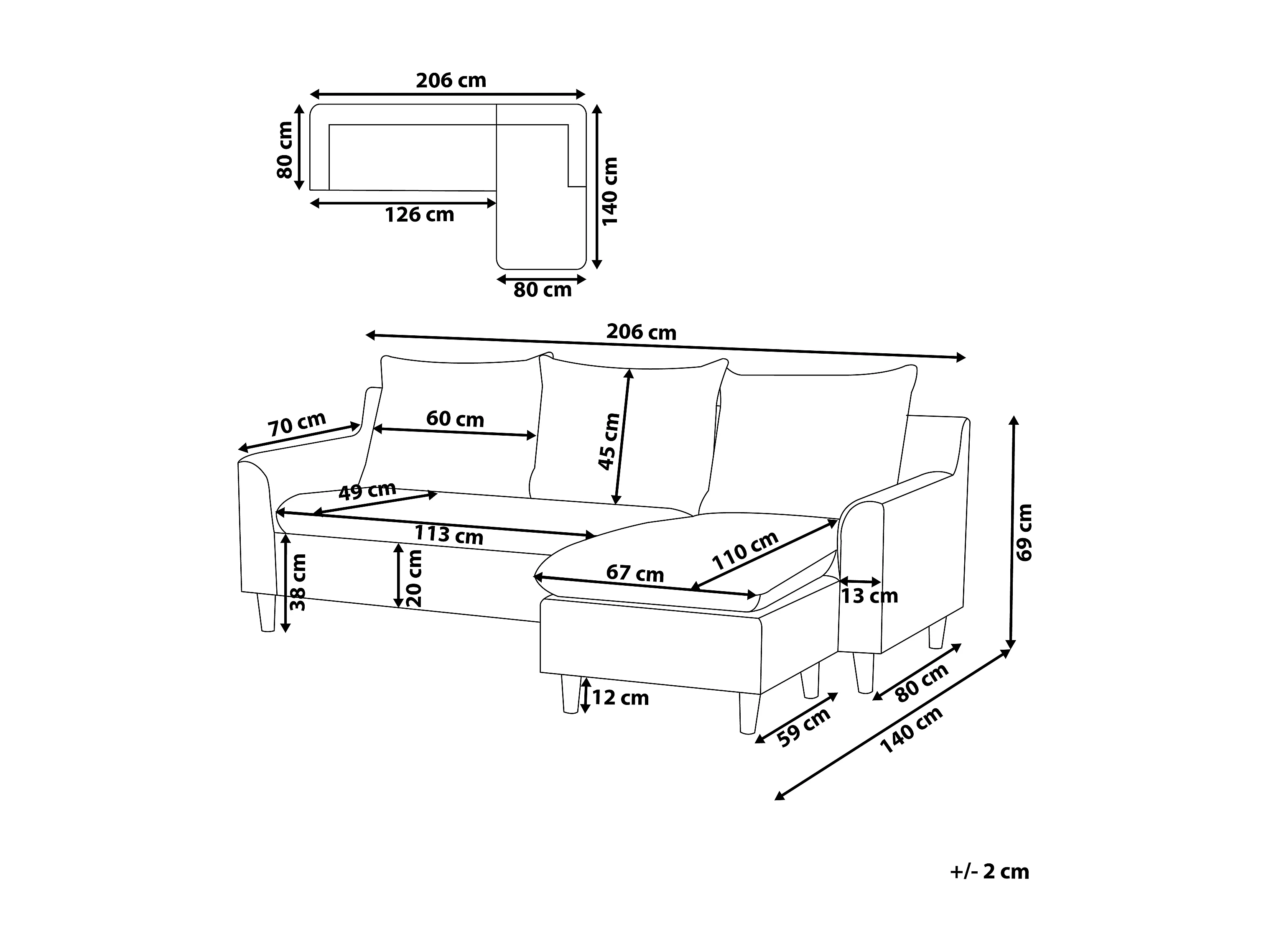 Hoekbank ELVENES Stof Donkergrijs 3-zitter Linkerzijde
