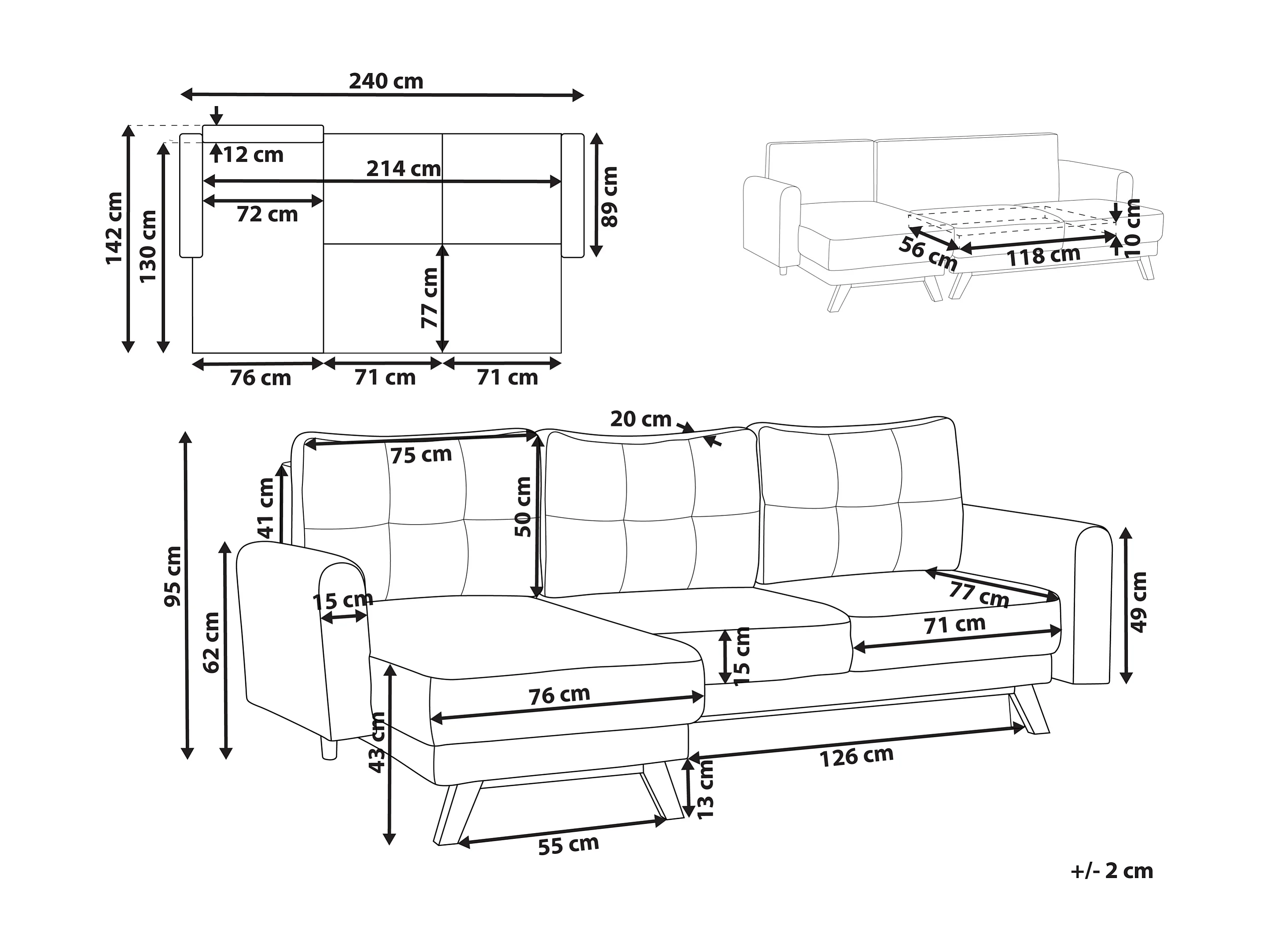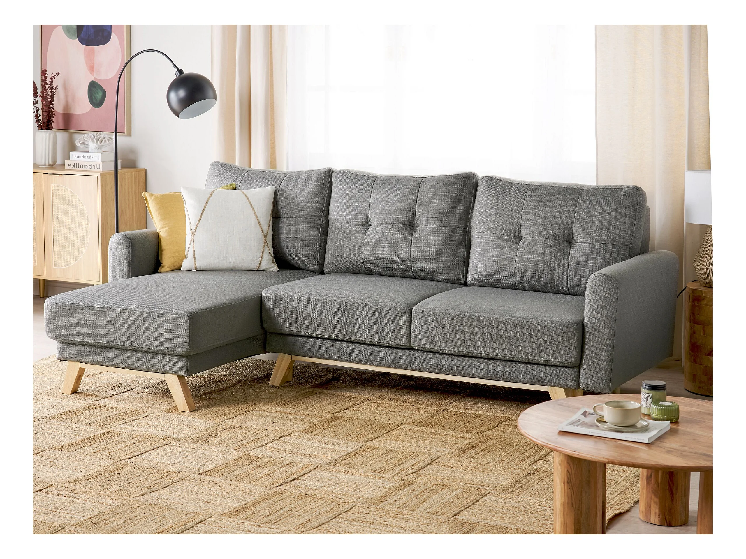 Hoekslaapbank SIRO Stof Grijs met opbergruimte 3-zitter Rechterzijde
