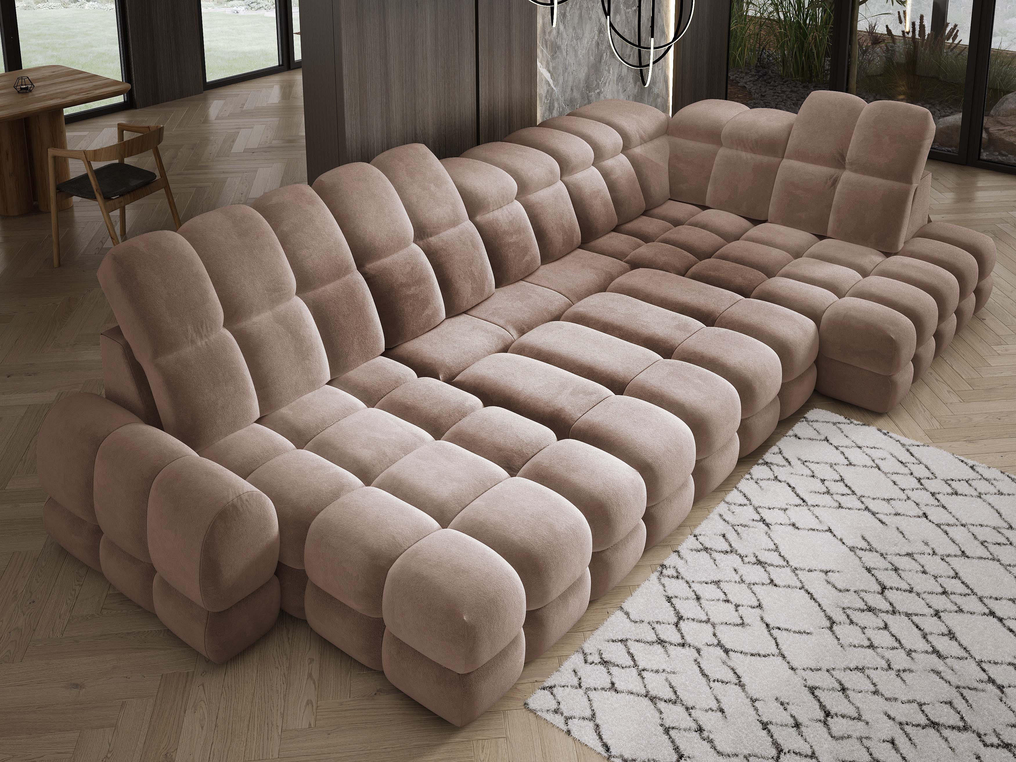 Hoekbank RAVEN XL met slaapfunctie, uittrekbed, verstelbare hoofdsteunen, opbergruimte, 334x198x162cm Rechts Beige