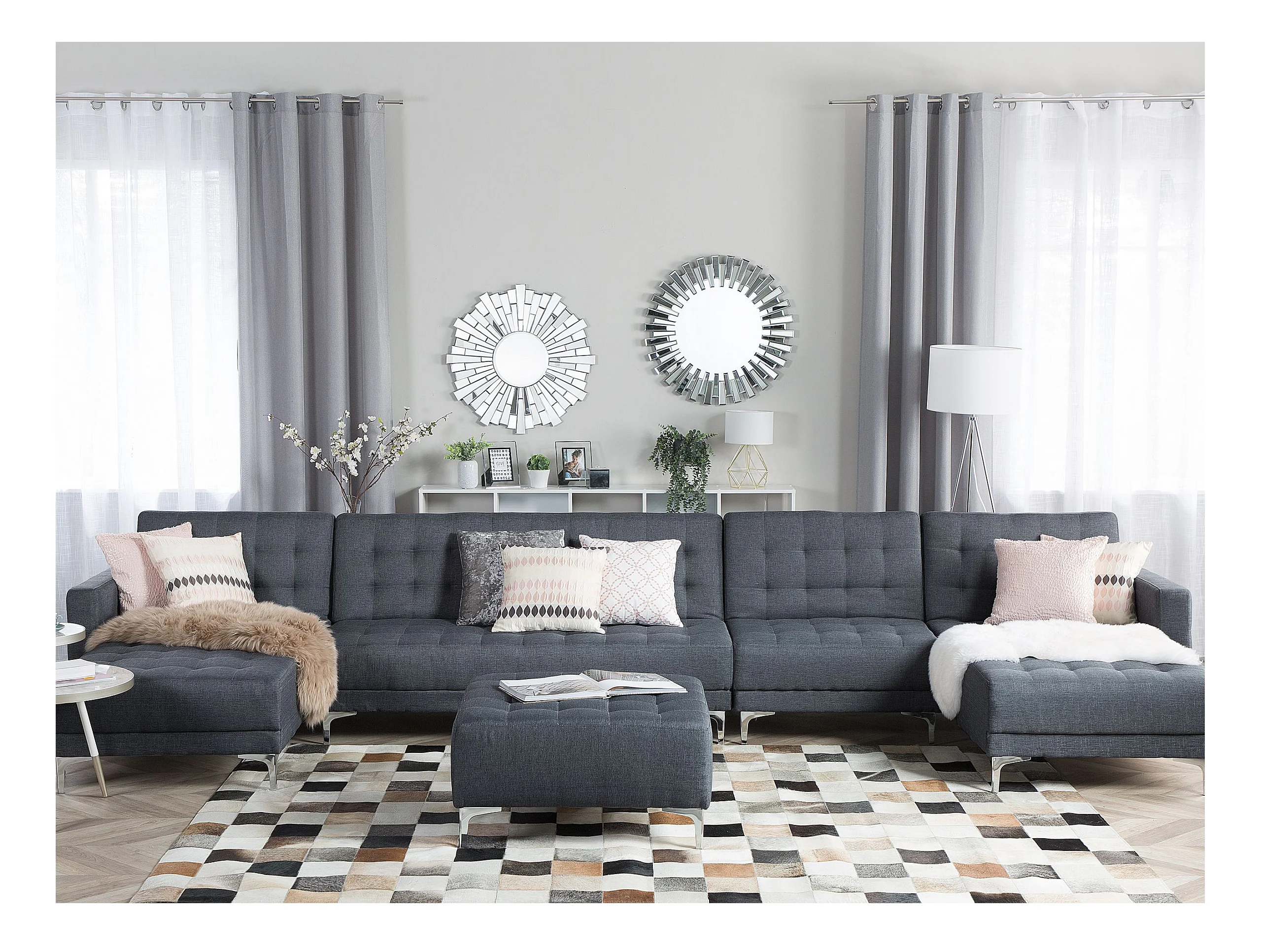 Modulaire U-vormige slaapbank ABERDEEN Stof Donkergrijs Met ottomaan 6-zitter