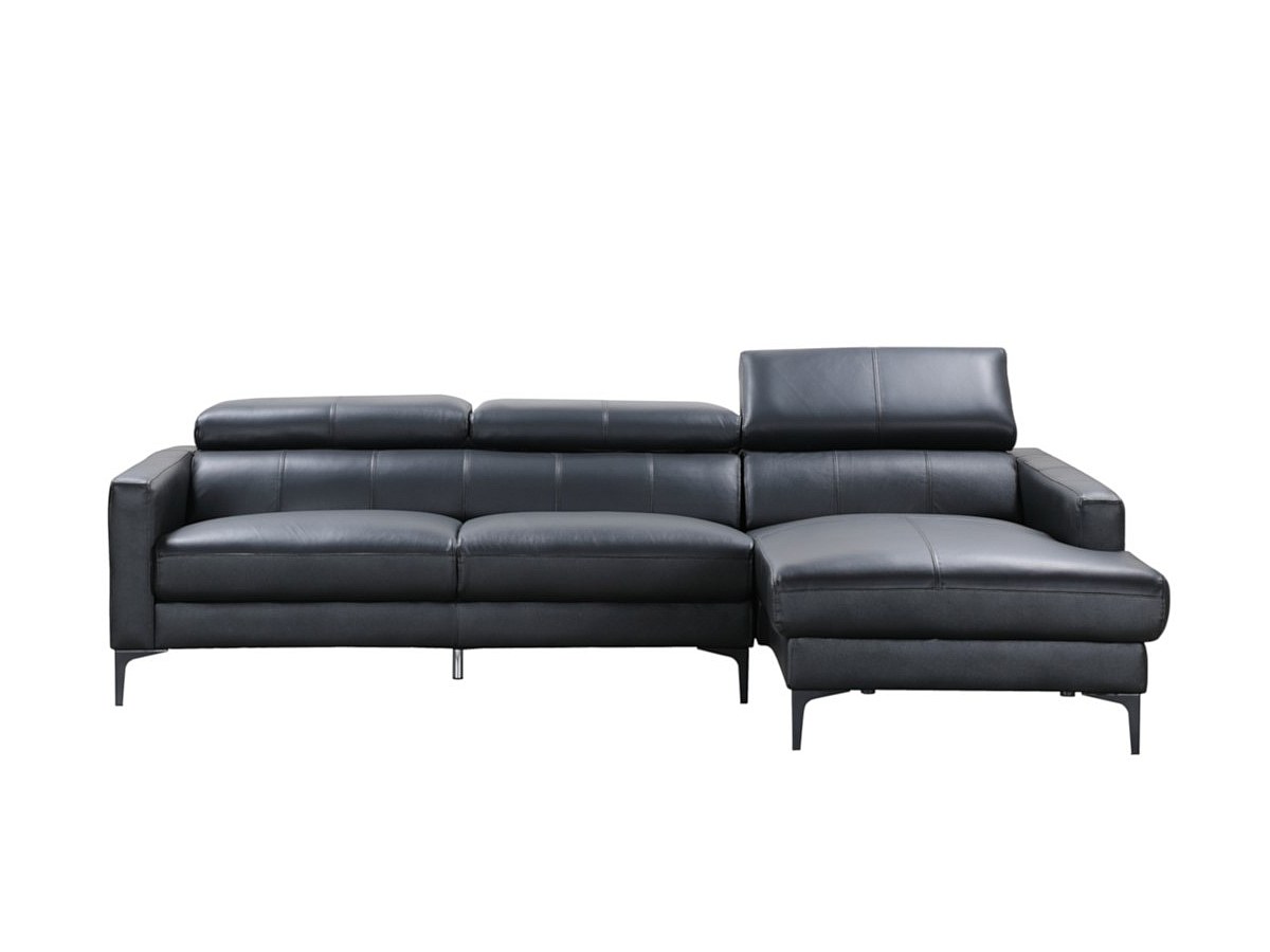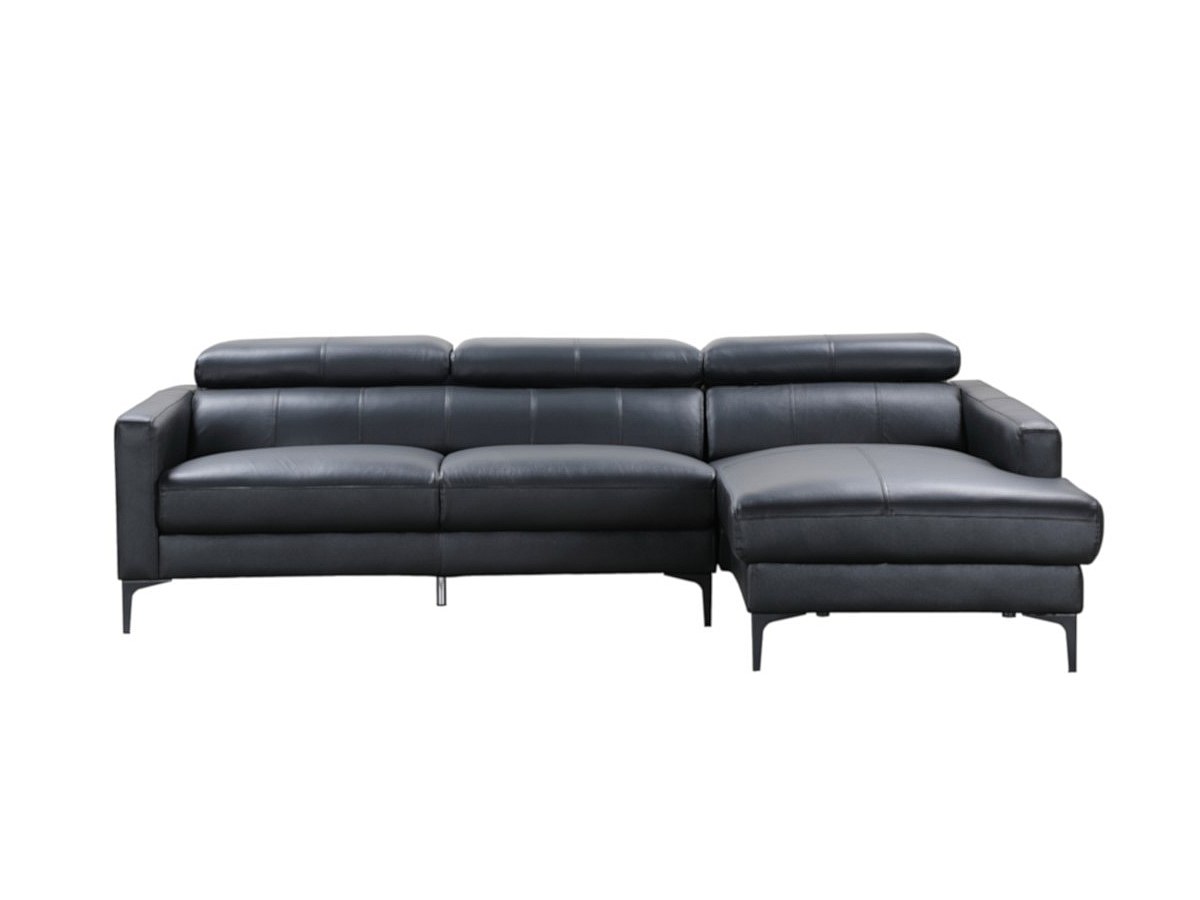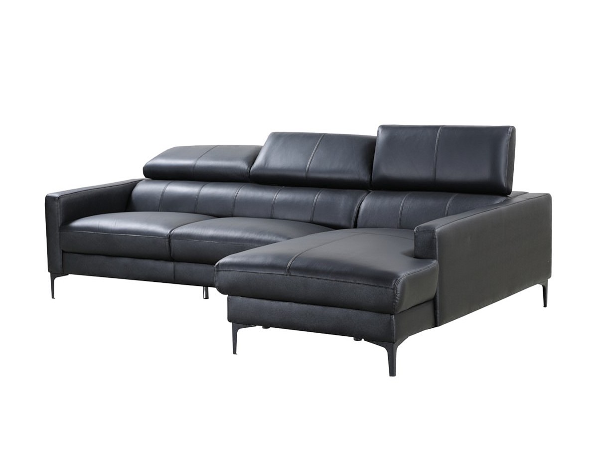 Hoekbank van buffelleer FLORENCE - Zwart - Rechtse hoek