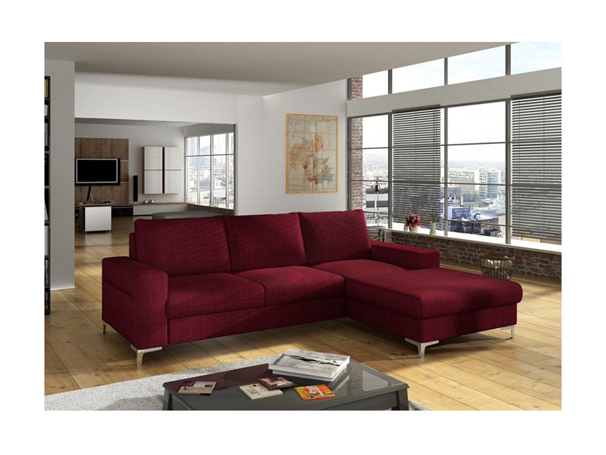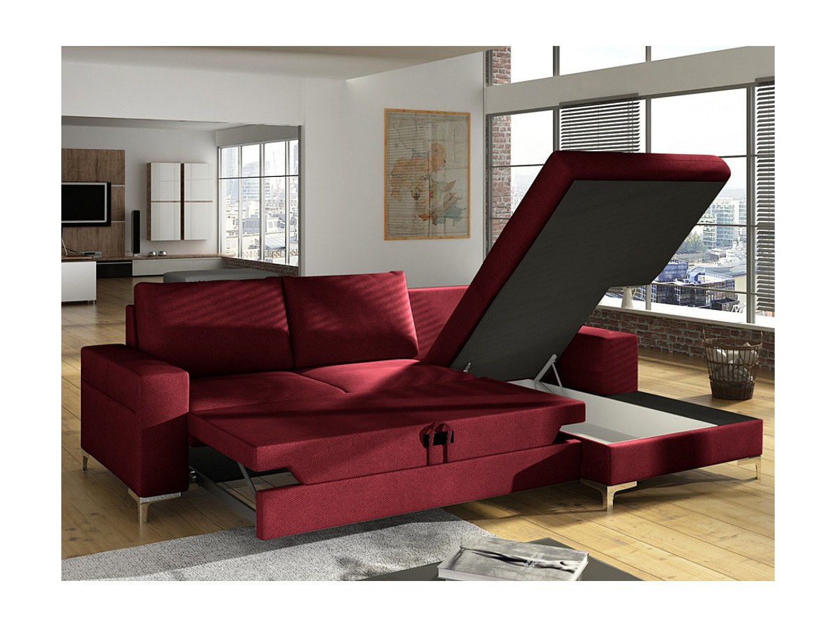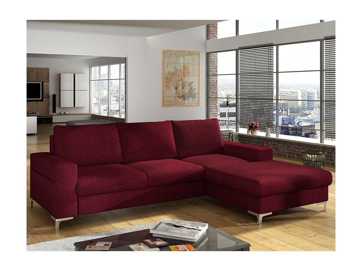 Hoekbedbank CHONA van stof - bordeaux rood - hoek rechts