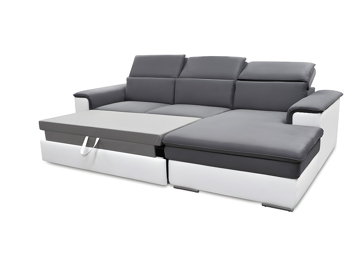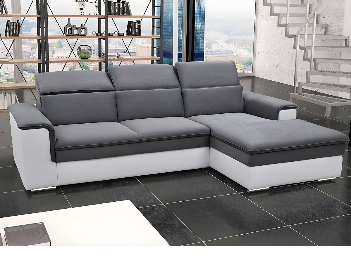 Hoekbedbank microvezel en kunstleer CONNOR - tweekleurig wit/Grijs - hoek rechts