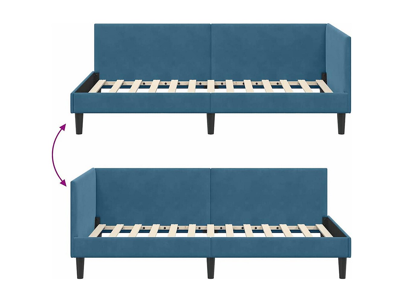 Hoekbedframe Blauw 90 x 190 cm Fluweel en Engineered hout
