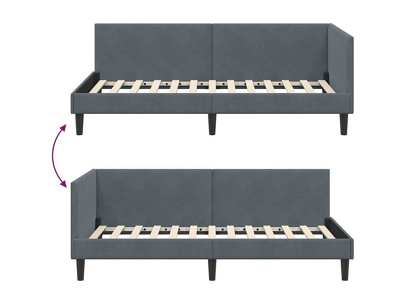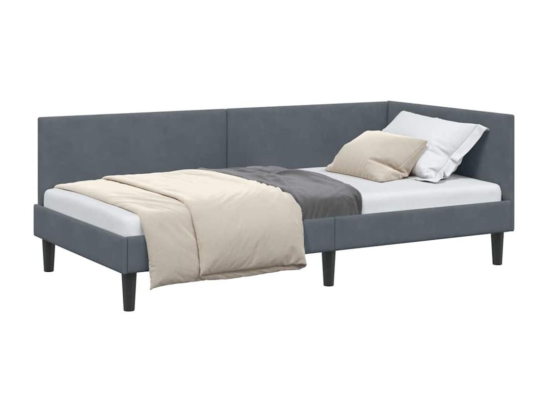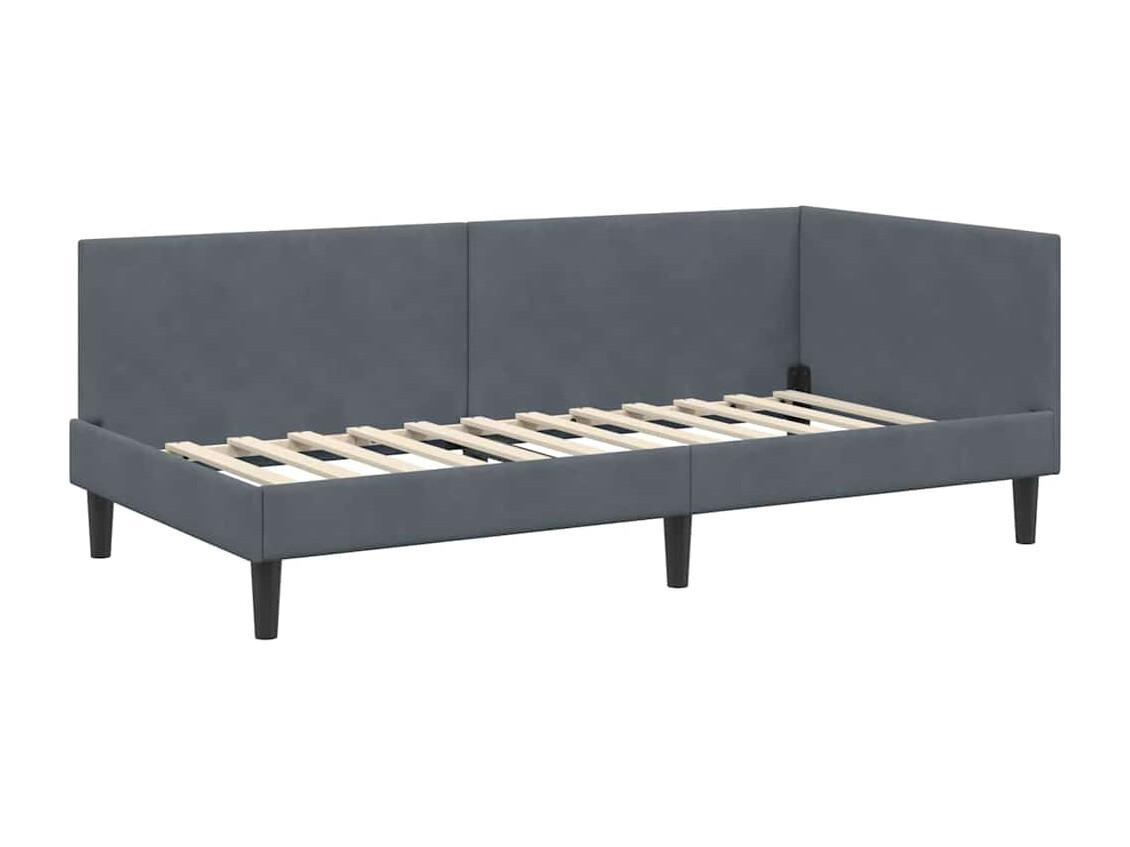 Hoekbedframe Donkergrijs 90 x 200 cm Fluweel en Engineered hout