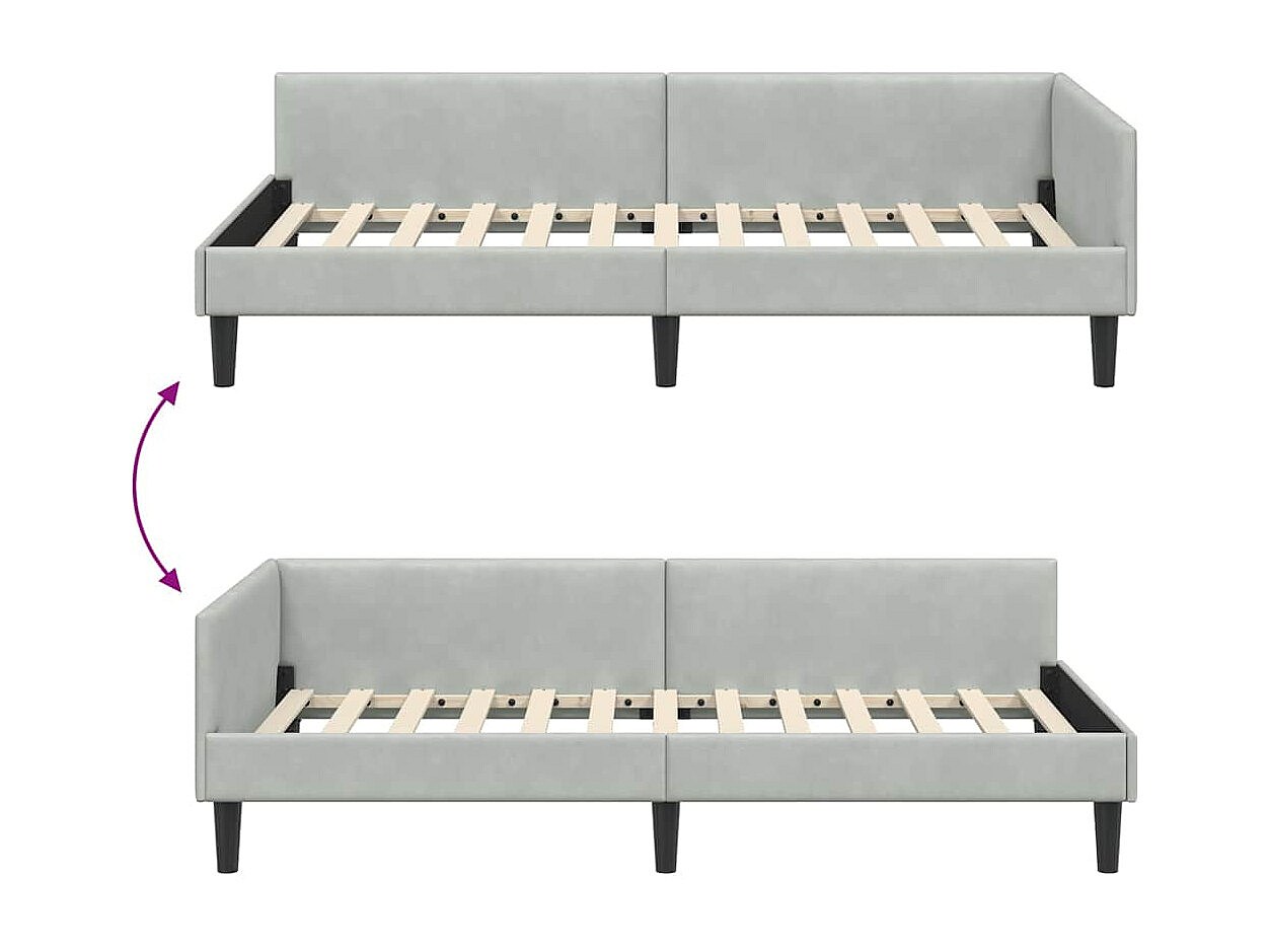 Hoekbedframe met hoofdeinde Lichtgrijs 90 x 190 cm